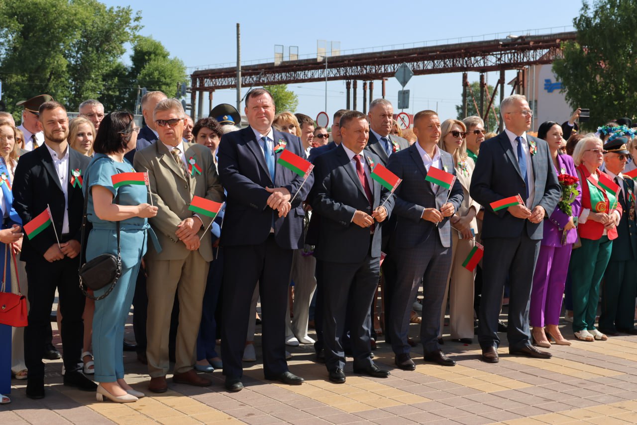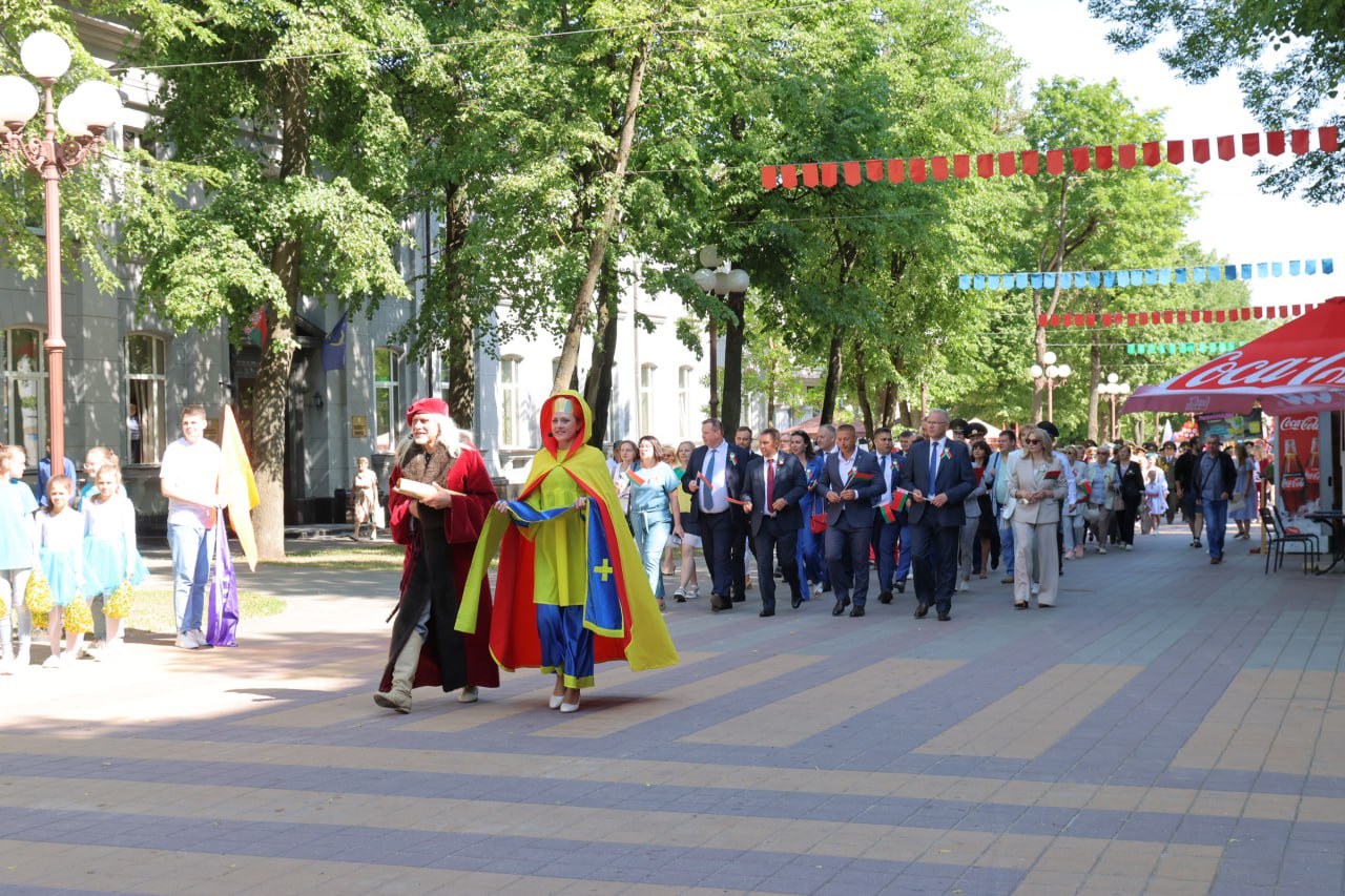 Торжественное шествие объединило представителей местной власти, депутатского корпуса, предприятий, организаций, учреждений, детей и молодежь, активистов общественных объединений. Одним из участников мероприятия стал заслуженный любительский коллектив Республики Беларусь ансамбль песни и танца «Спадчына» имени И.Сушко Дворца культуры г.Молодечно.