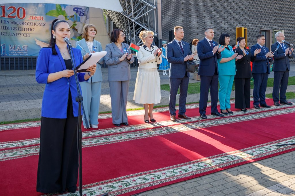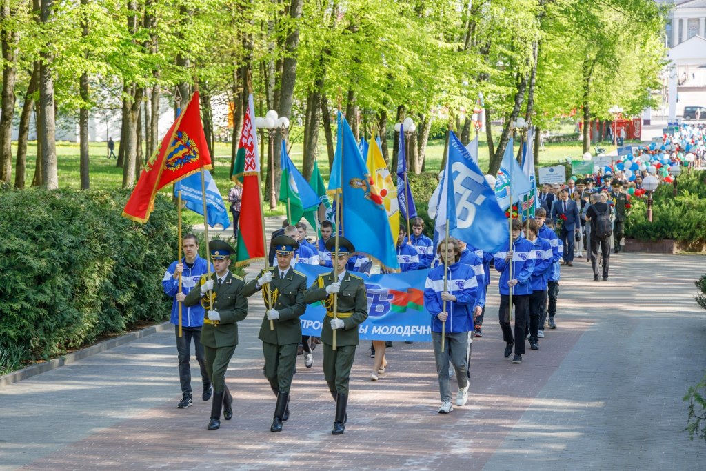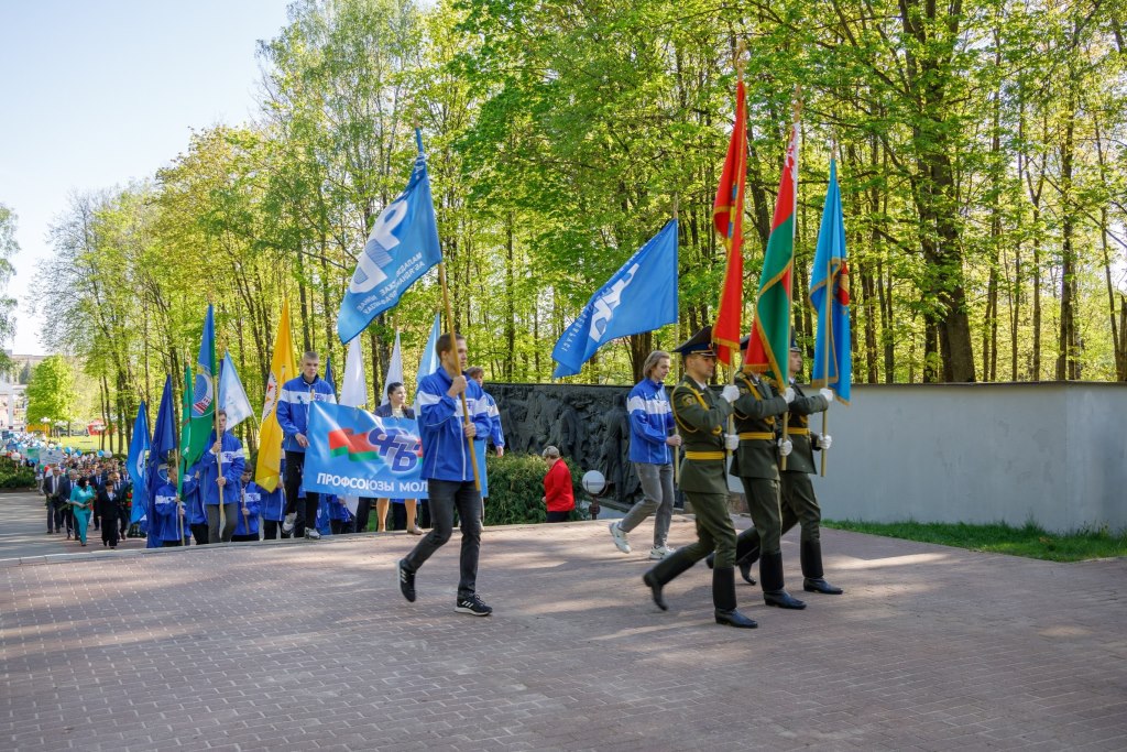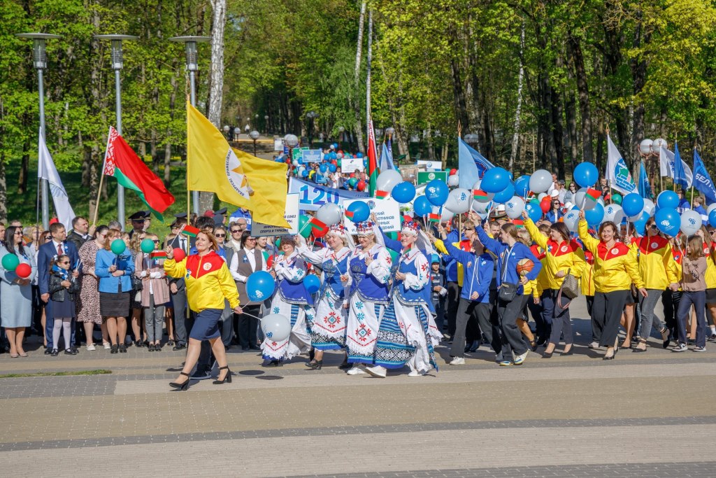 В Молодечно Первомай и празднование 120-летия белорусского профсоюзного движения начался в городском парке культуры и отдыха им. Победы с шествия «Парад профессий» представителей трудовых коллективов, ветеранов труда и профсоюзных активистов во главе с руководством Молодечненского района и депутатским корпусом.