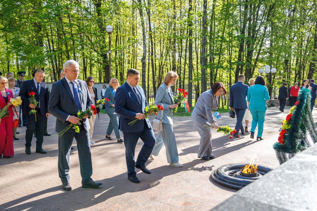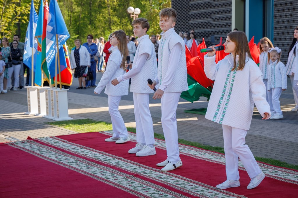 Продолжились официальные торжества на площадке у Амфитеатра. Ведущая мероприятия Анна Рухадзе пригласила к микрофону для приветствия участников праздника председателя Молодечненского районного исполнительного комитета Павла Губко, председателя Молодечненского районного Совета депутатов Людмилу Кананович, председателя Молодечненского районного объединения профсоюзов, депутата Минского областного Совета депутатов 28 созыва Татьяну Яцухно и др.