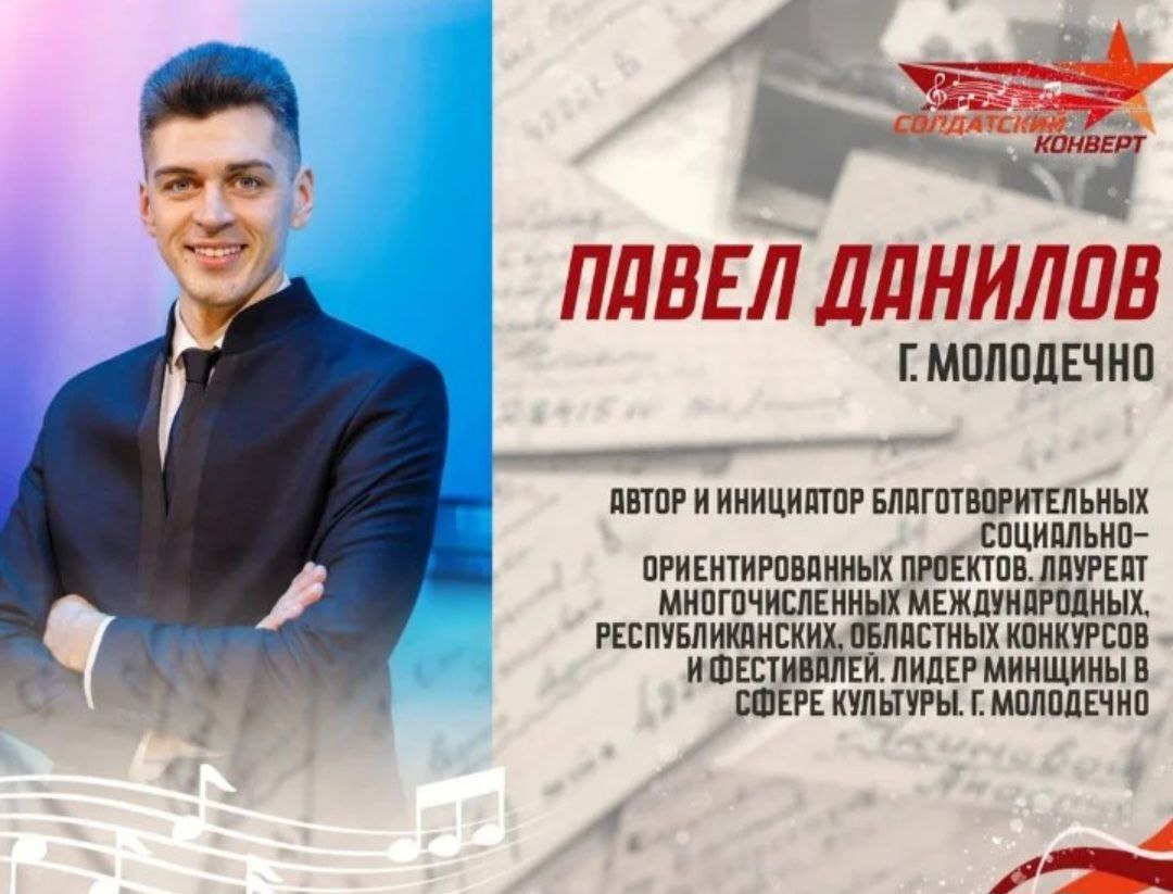 Представители Дворца культуры г.Молодечно Павел Данилов и ансамбль «Менестрели» 8 мая примут участие в отборочном туре по Минской области и, согласно условиям конкурса, исполнят песни военной тематики.