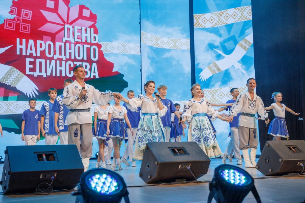 Данью глубокого уважения и гордости за нашу страну, за людей, за наши традиции и сплочённость стала большая концертная программа с участием творческих коллективов учреждений города: ГУ «Дворец культуры г.Молодечно», ГУО «Молодечненская детская школа искусств», ГУ «Молодечненский районный центр культуры», ГУО «Гимназия-колледж искусств г.Молодечно», ГУ «Детский центр культуры «Росток» г.Молодечно», а также воспитанники ДЮСШ, военнослужащие воинской части 4152, представители общественных организаций района.