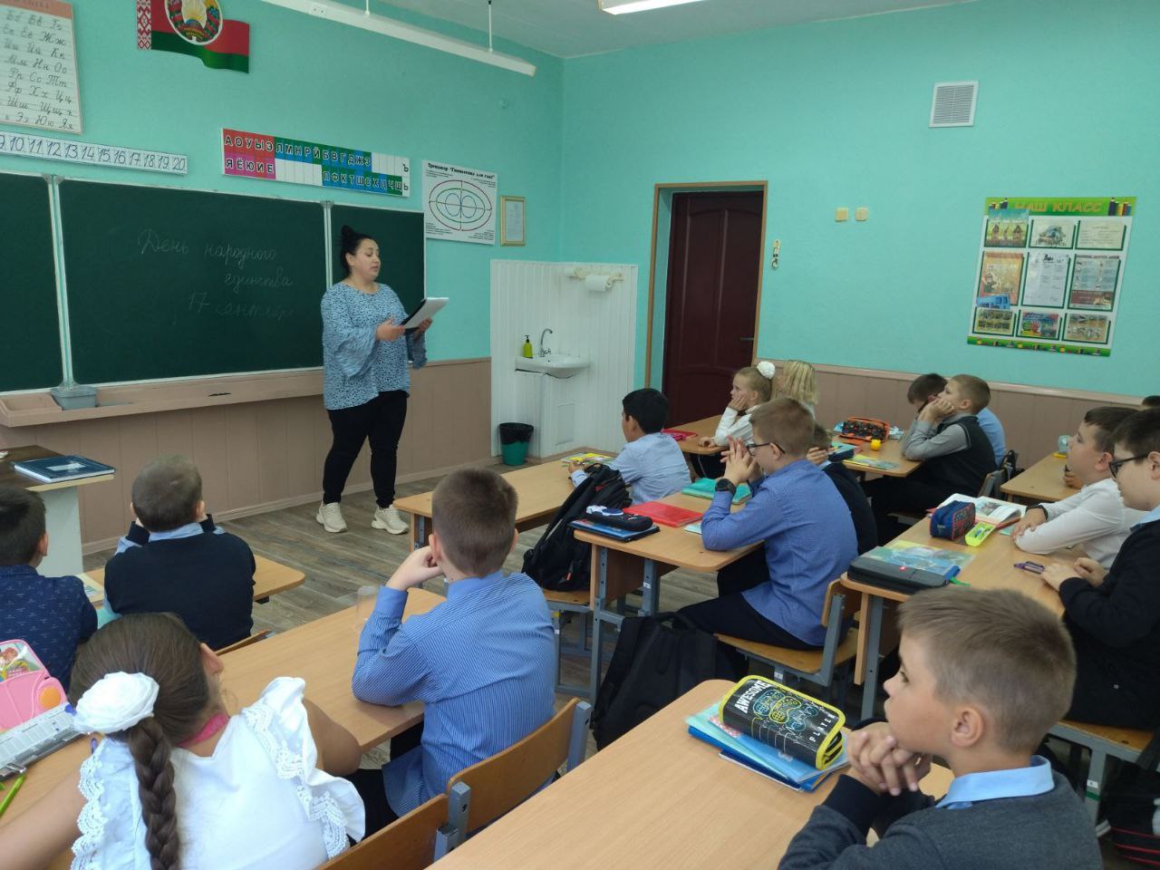 Одно из мероприятий состоялось 16 сентября на базе средней школы №8 нашего города. Ведущая встречи Надежда Бушило в доступной и интересной для детей форме рассказала о самом молодом в нашей стране государственном празднике, его историческом значении для каждого белоруса. Ребята, в свою очередь, поделились своим пониманием того, что для каждого из них значит «единство».
