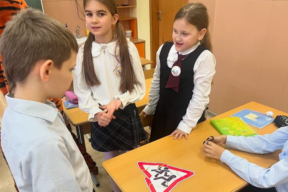 Третьеклассники с радостью слушали известных мультяшных персонажей, которые напомнили ребятам правила дорожного движения.