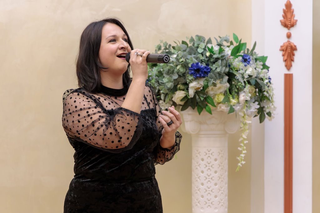 Трогательные номера представили вокальное трио «Вояж» и Ольга Борисова, исполнив полюбившиеся композиции «Берегите родных» и «Эхо любви», а юная и очень талантливая Елизавета Зенько вместе с гостями торжества отправилась в «Прекрасное далёко».