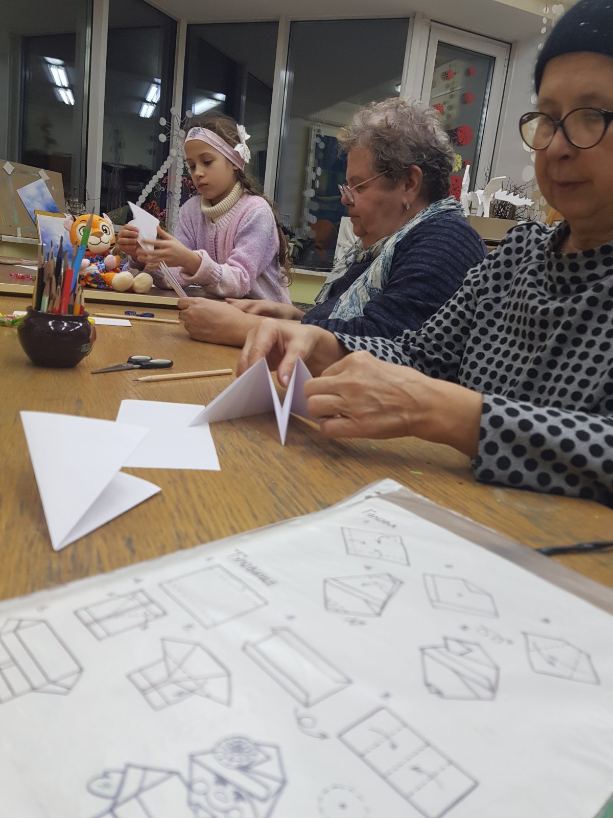 Под руководством педагога творческого объединения Тамары Марченковой участники мастер-класса продолжили изучение техники вырезания из бумаги. Теперь и взрослые, и дети в преддверии рождественских и новогодних праздников с лёгкостью украсят окна своих домов красивыми резными снежинками в стиле вытинанки!