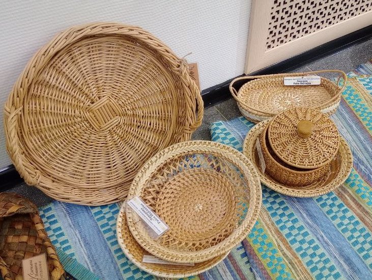 На выставке нашими умельцами представлены изделия из лозы утилитарного характера – корзины, оплетённые бутылки, хлебницы, блюда для фруктов, декоративные тарелки и многое другое.