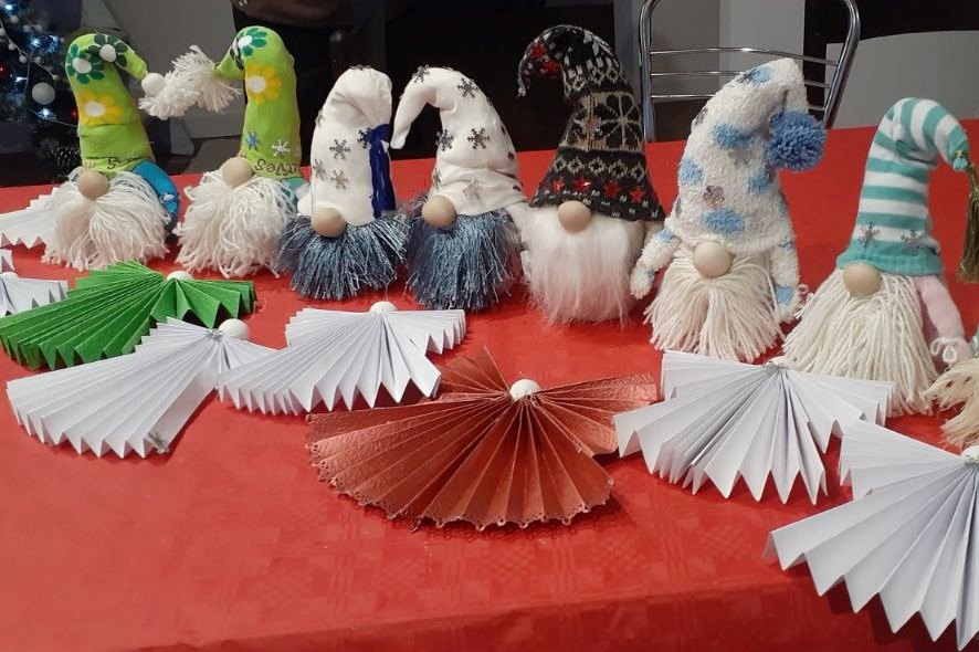 Участницы коллектива в этот раз создавали из подручных материалов забавных снежных гномов и рождественских ангелов.