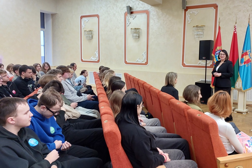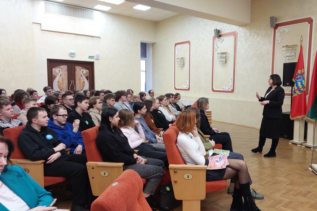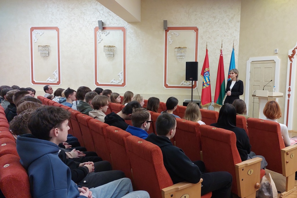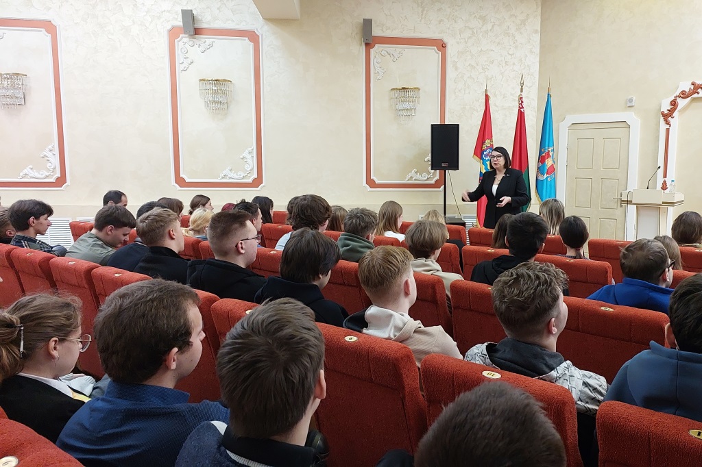 В конференц-зале учреждения в этот день состоялась информационная встреча с учащимися средних специальных учебных заведений с заместителем председателя Молодечненского районного исполнительного комитета Алесей Александровной Луковской. В непринужденной обстановке участники встречи поздравили друг друга с весомой юбилейной датой для каждого жителя региона, а также поговорили об устройстве законодательной власти в нашей стране и о грядущем важном политическом событии для всех граждан Беларуси – о выборах Президента.