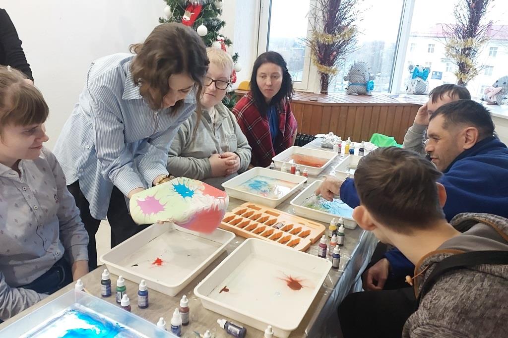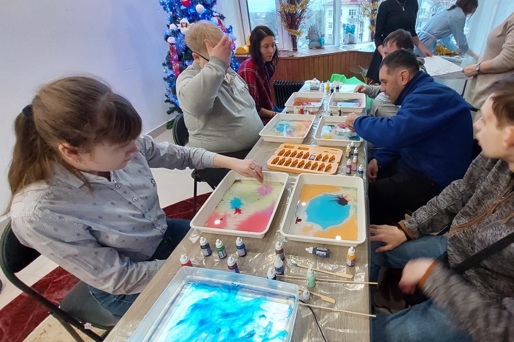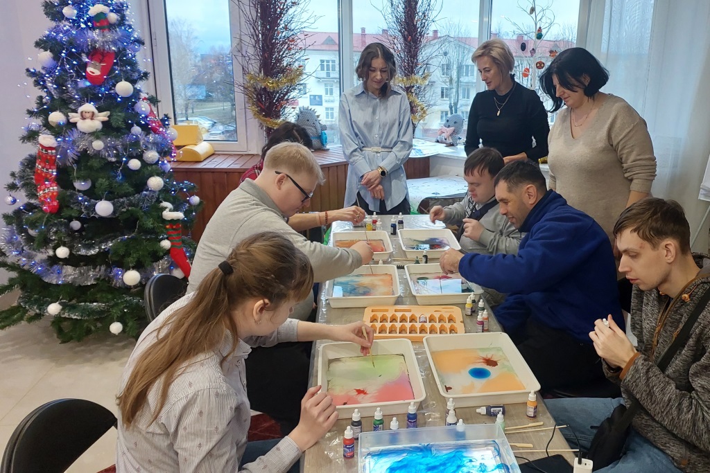 17.01.2025Участники любительского объединения визуального искусства «Моё солнце» для людей с особенностями развития и ограниченными возможностями Дворца культуры г.Молодечно приняли участие в творческом мастер-классе по созданию картин в необычной технике ж ивописи «эбру».