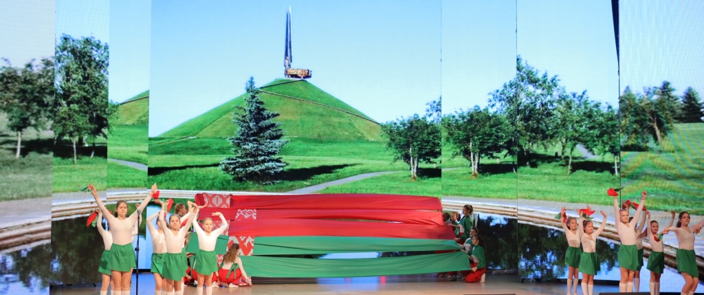 Открыл торжественное мероприятие образцовый хореографический ансамбль «ВиЗаВи», который продемонстрировал полюбившееся многим эффектное флаг-шоу «Моя Беларусь».