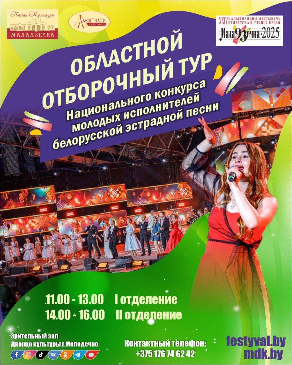 10.02.2025Во Дворце культуры г.Молодечно 12 февраля состоится областной отборочный тур Национального конкурса молодых исполнителей белорусской эстрадной песни в рамках XXIV Национального фестиваля белорусской песни и поэзии «Мала93ечна – 2025».