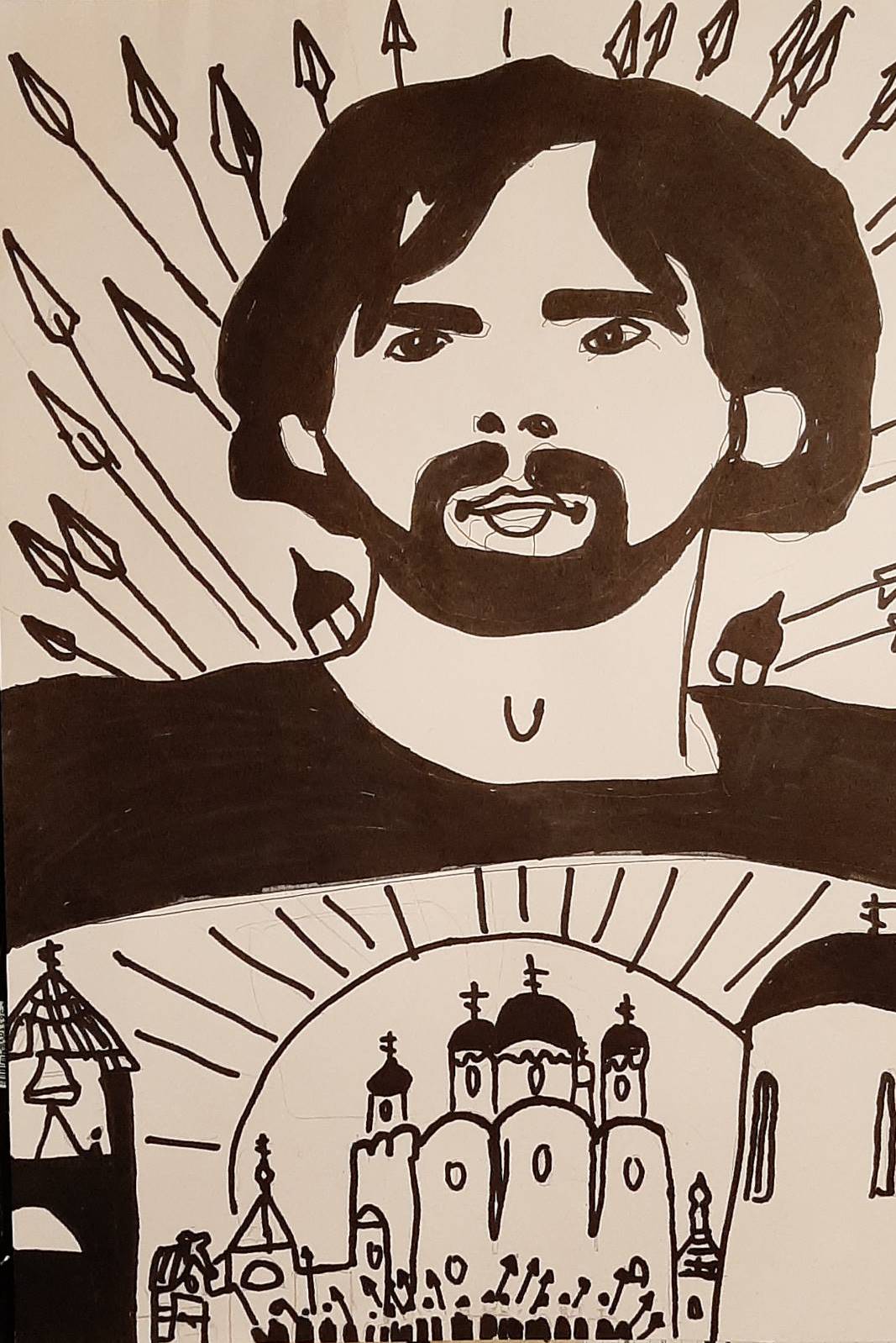 На торжественном открытии мама Ивана поделилась историей его творческого пути. С ранних лет увлечение рисованием переросло в страсть к созданию масштабных полотен. Военные события разных эпох – главный источник вдохновения для художника. Изучая историю, просматривая тематические фильмы, Иван воплощает свои знания на холсте. Одним из любимых персонажей, изображаемых им, является прославленный полководец Александр Невский.