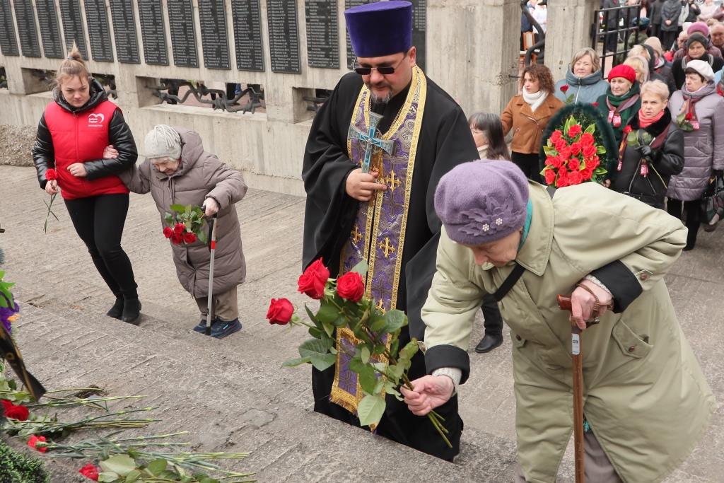 Склоняя головы перед светлой памятью жертв концентрационных лагерей, присутствующие вместе со священнослужителем – протоиереем Виталием Богданёнком – обратились к Богу в молитве за ушедших в вечность ценой своей жизни.