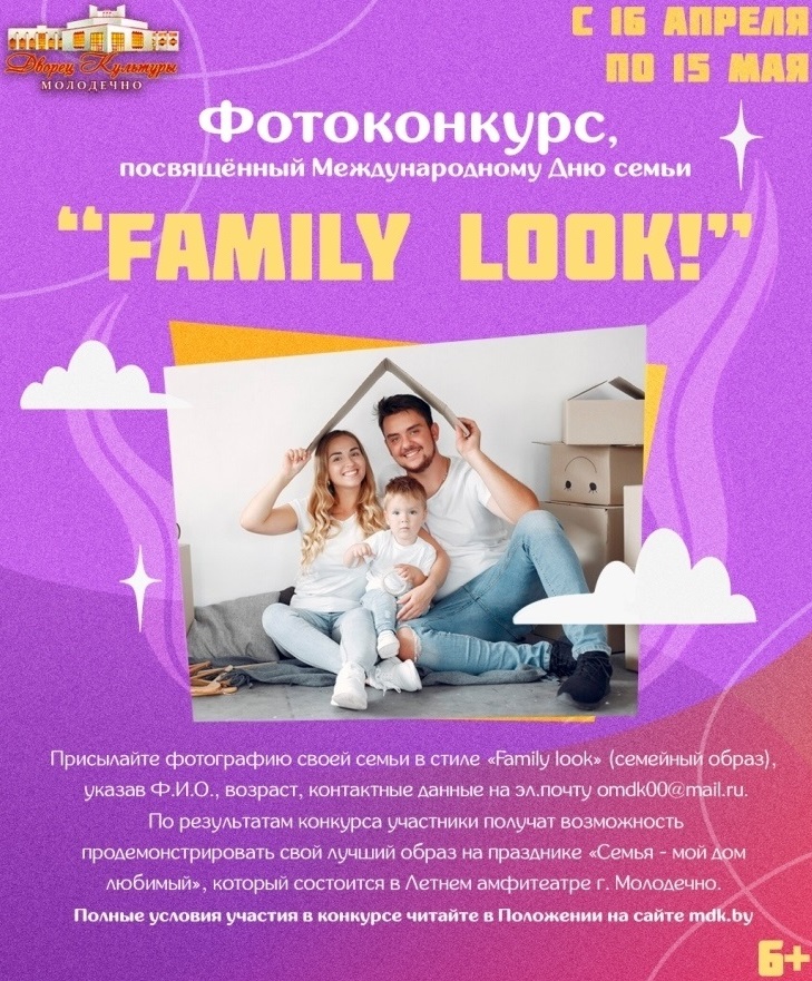 17.04.2025Отдел по работе с детьми и молодёжью Дворца культуры г.Молодечно приглашает принять участие в фотоконкурсе «Family look»!