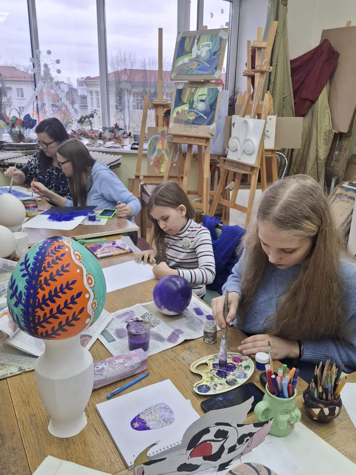 18.04.2025Накануне светлого праздника Пасхи, 18 апреля, в народной студии изобразительного и декоративно-прикладного искусства Дворца культуры г. Молодечно прошел мастер-класс по росписи яиц «Весеннее чудо». Управляла творческим процессом Елена Кучко, которая руководит этим объединением по интересам.