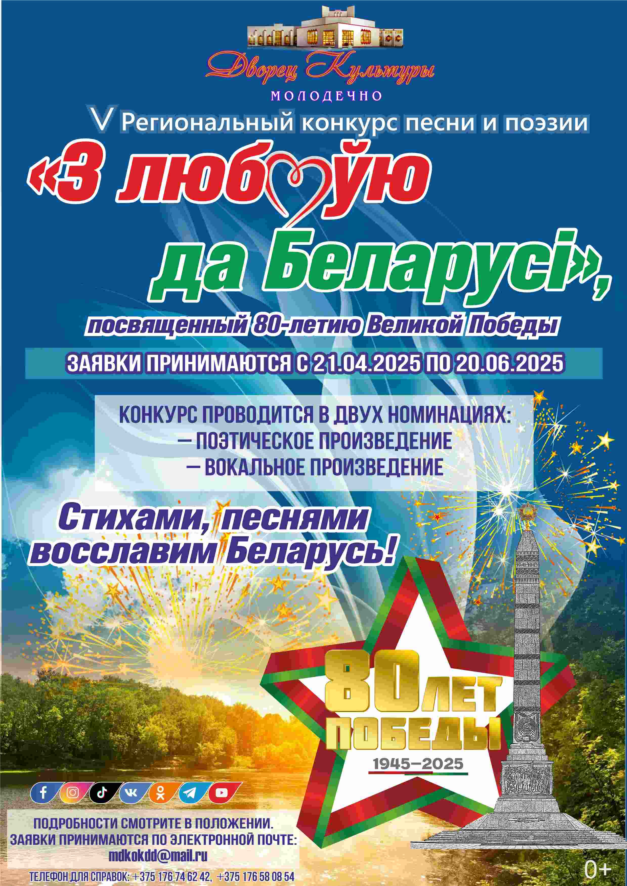 21.04.2025Во Дворце культуры дан старт V региональному конкурсу песни и поэзии «З любоўю да Беларусі», посвященный 80-летию Великой Победы.