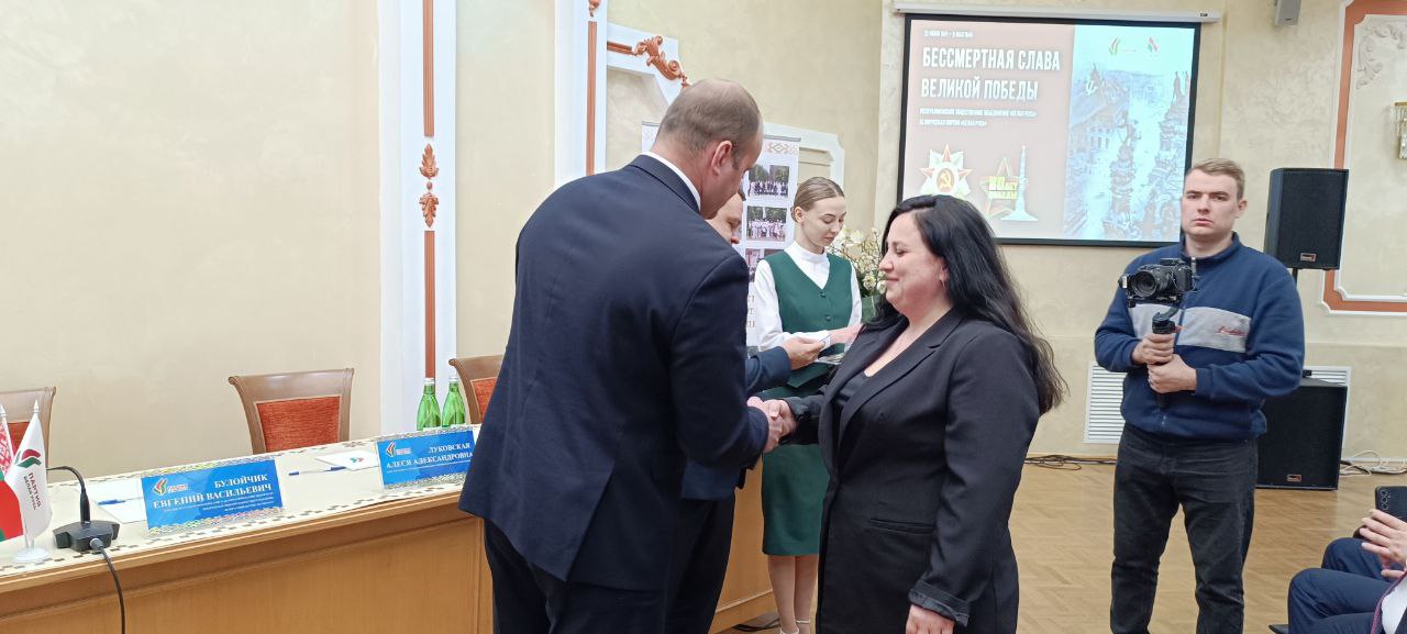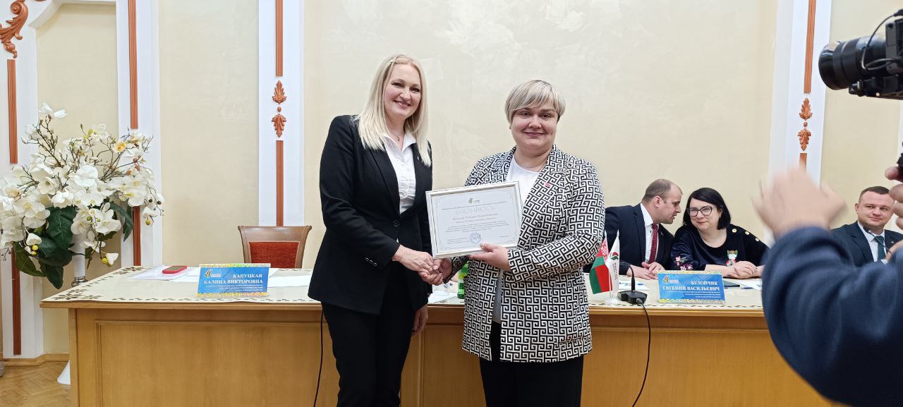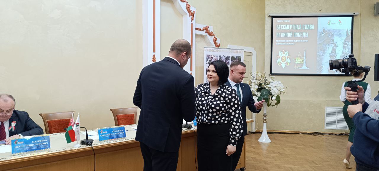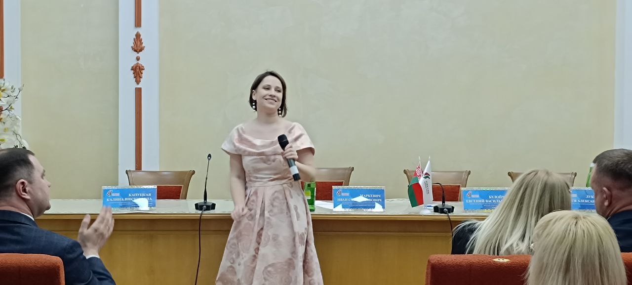 Творческий подарок участникам собрания подготовили артисты Дворца культуры. Они аплодировали Ирине Судникович и образцовой студии эстрадной песни «Спяваем разам».