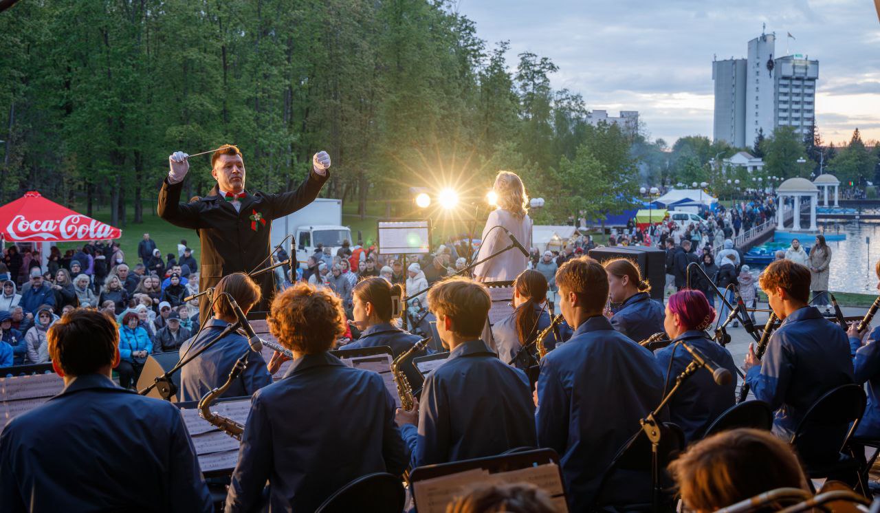 09.05.2025Торжества в Молодечно, посвящённые 80-летию Победы в Великой Отечественной войне, завершил праздничный вечерний концерт «В песнях останемся мы» народного духового оркестра Молодечненского государственного музыкального колледжа им. М.К. Огинского (художественный руководитель и дирижёр – Алексей Андреев).