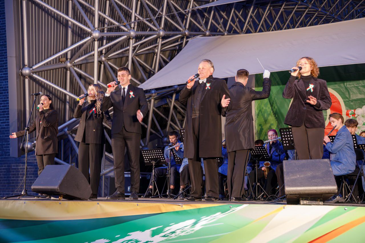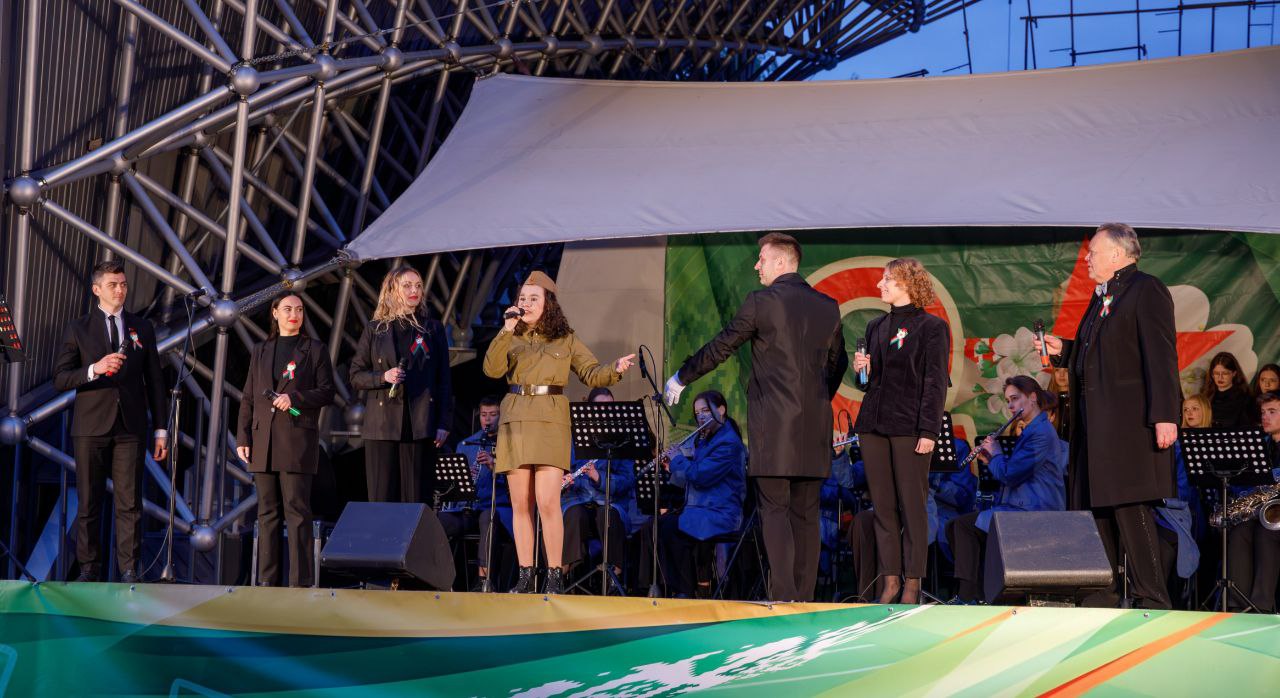 Овации вызвало совместное исполнение артистами и зрителями под аккомпанемент оркестра песни «День Победы» – все от мала до велика пели заветные слова «со слезами на глазах» в знак безграничной благодарности за бессмертный подвиг в годы Великой Отечественной войны.