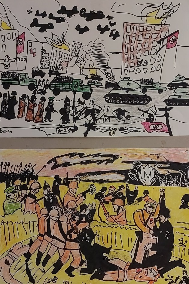 Выставка представляет собой творческий взгляд юного поколения на трагические события войны. В работах Ивана Кузнецова, Полины Матвеевой, Елизаветы Войтовой, Ульяны Поздняковой, Эмилии Копач и Вари Лях отражены как сцены ожесточенных боев, так и моменты освобождения узников из фашистских концлагерей, а также образы людей, переживших ужасы войны...