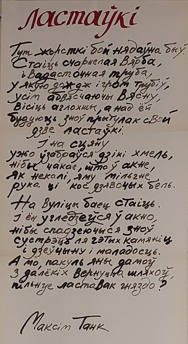 Особую атмосферу выставке придают стихи белорусских авторов, тематически связанные с экспозицией и размещенные рядом с рисунками. Они позволяют посетителям глубже прочувствовать эмоциональный накал и трагизм военного времени. Автор творческой задумки – руководитель изостудии Елена Кучко.
