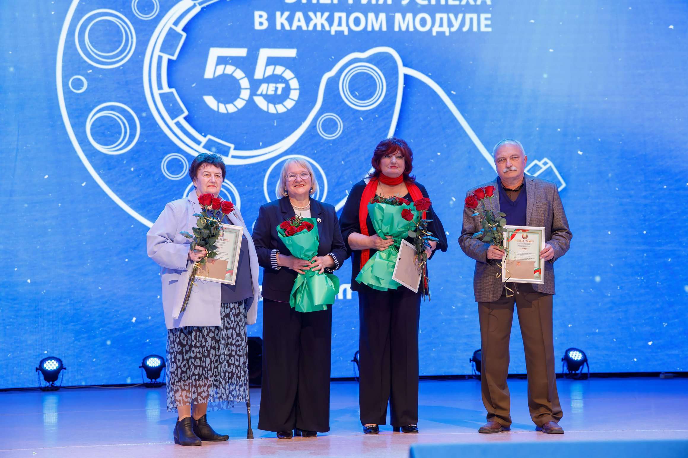 В праздничный день прозвучали многочисленные поздравления в адрес предприятия, а наиболее успешные работники были награждены почетными грамотами и благодарностями, в том числе от премьер-министра Республики Беларусь, Министерства промышленности Республики Беларусь, Минского областного и Молодечненского районного исполнительных комитетов.