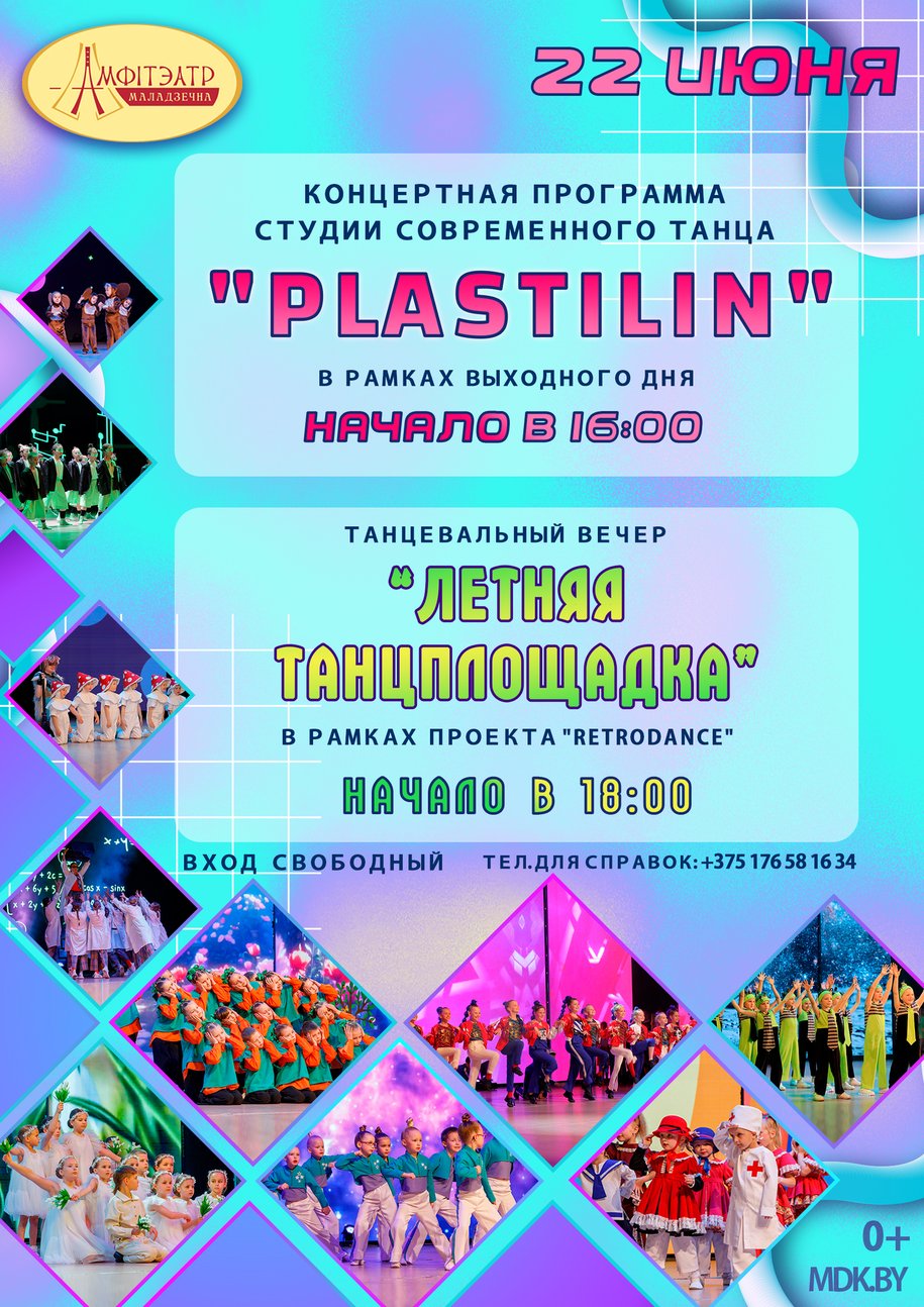 18.06.2025Проведите воскресенье с пользой в нашем Амфитеатре! Приглашаем 22 июня на концертную программу студии современного танца «PLASTILIN». Начало в 16.00.