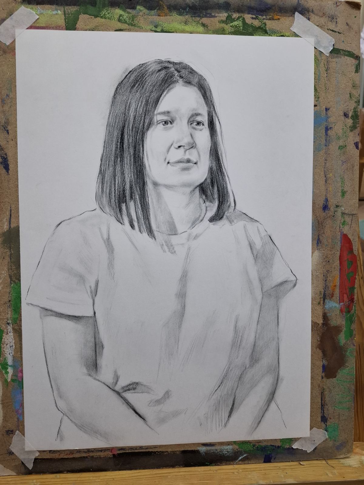 Это инициатива руководителя студии Елены Кучко. Портрет с натуры – один из самых сложных жанров изобразительного искусства: ведь художники непосредственно наблюдают модель и рисуют её. Но ни лидер и идейный вдохновитель студийцев, ни они сами простых задач себе не ставят. Занятие длилось около двух часов. Именно столько позировала и приглашённая натурщица.