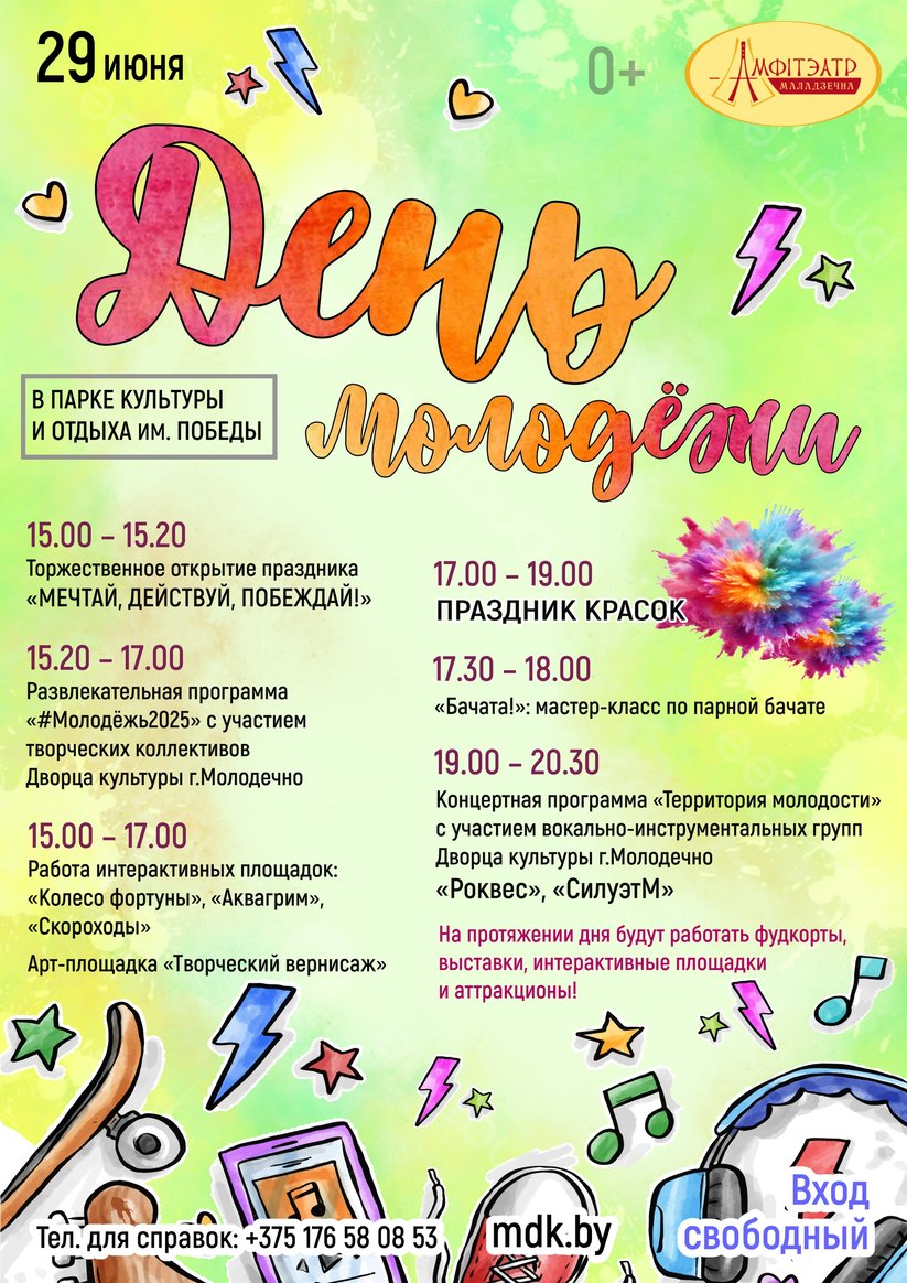 26.06.2025Празднование Дня молодёжи состоится 29 июня в парке культуры и отдыха имени Победы. Не пропустите это яркое событие!