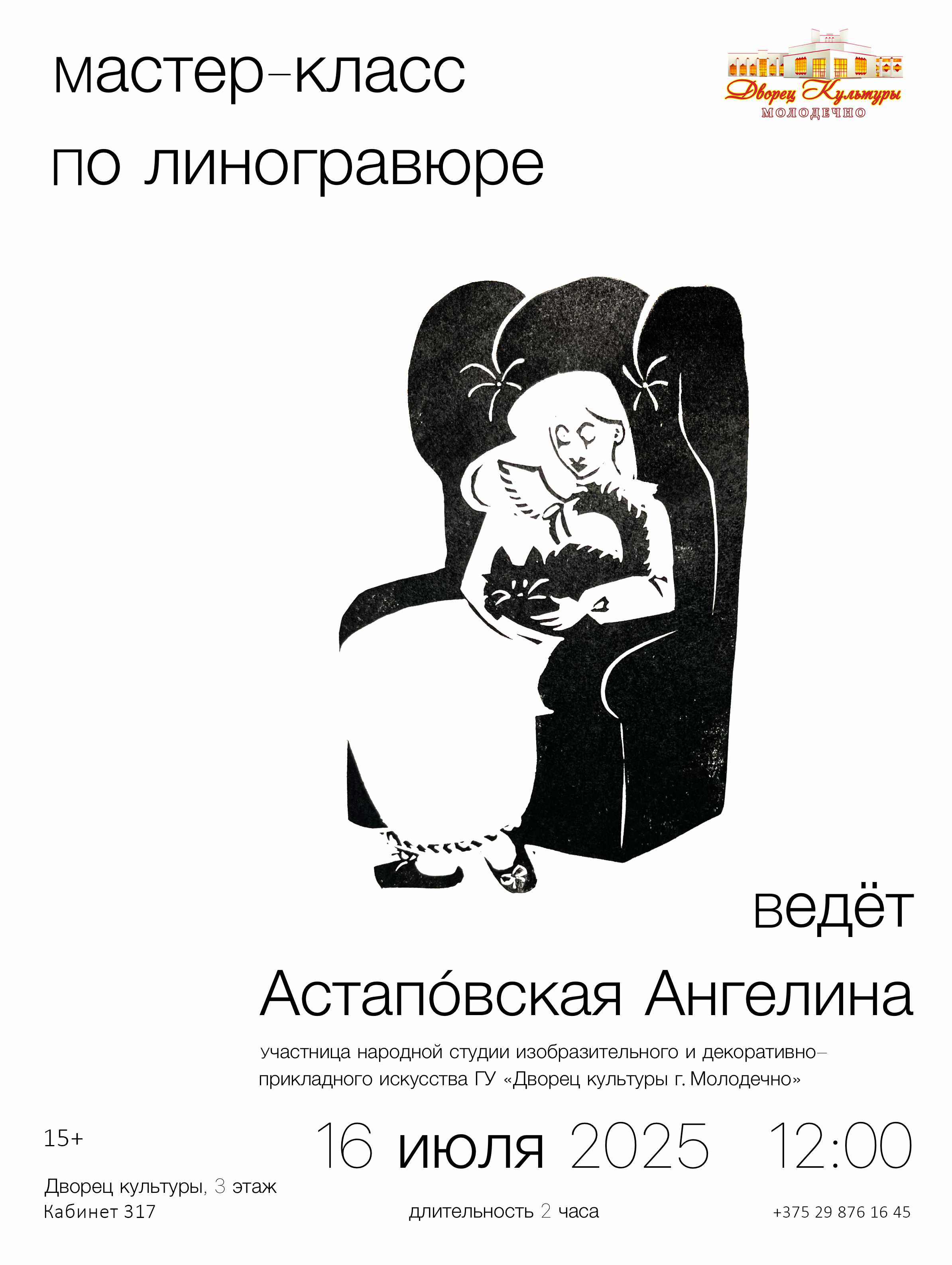 Мастер-класс запланирован в нашем учреждении на 16 июля. Начало в 12.00. Продолжительность – два часа. Наличие свободных мест уточняйте по телефону: + 375 29 876 16 45.