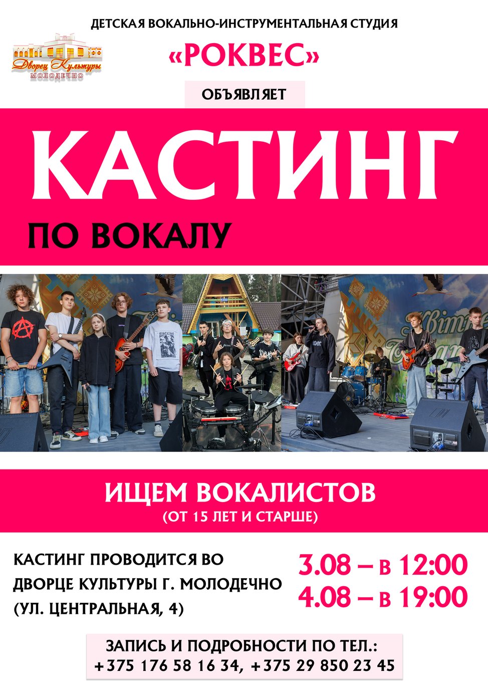25.07.2025Детская вокально-инструментальная студия «РОКВЕС» Дворца культуры г. Молодечно объявляет КАСТИНГ по вокалу.