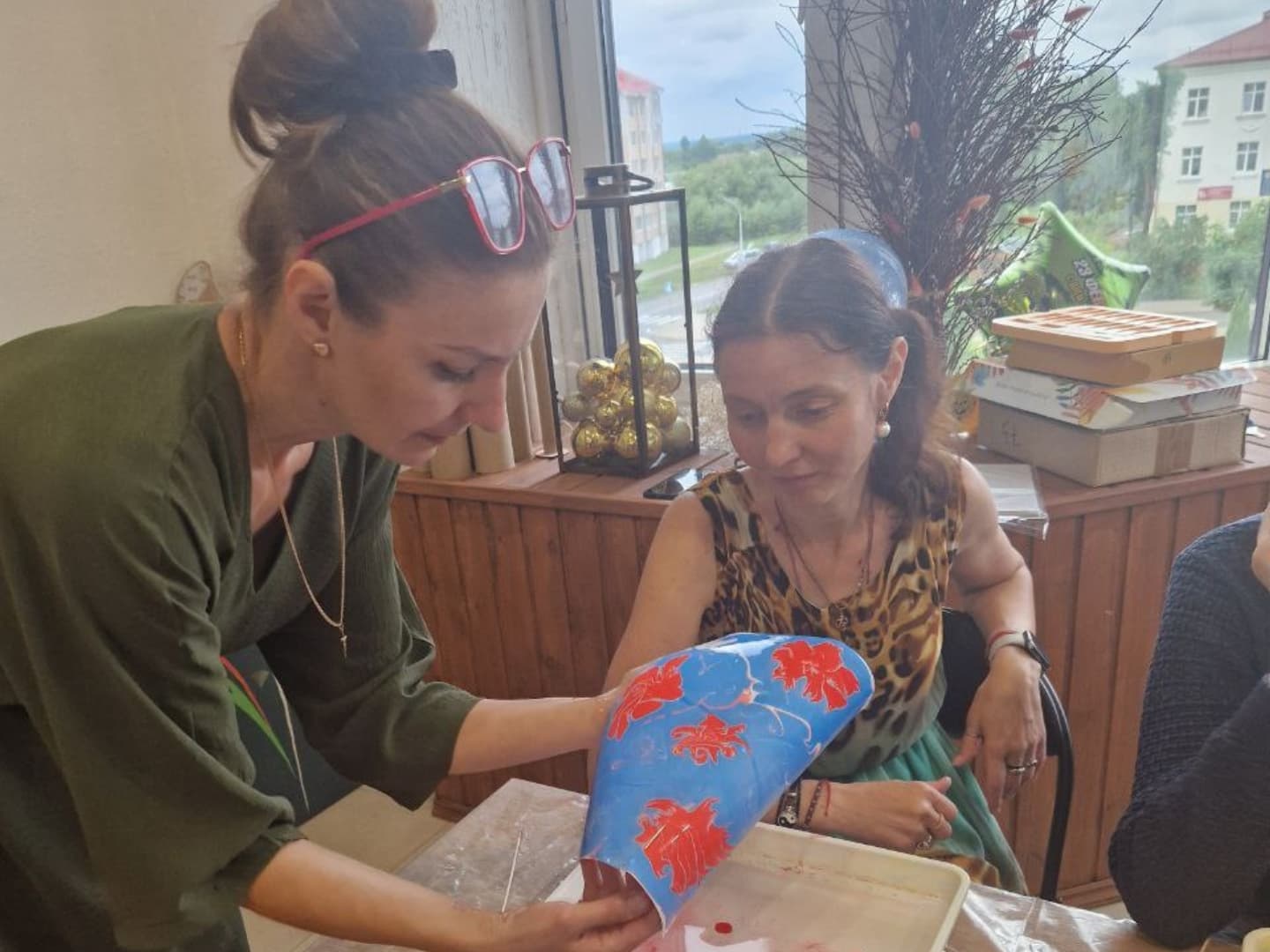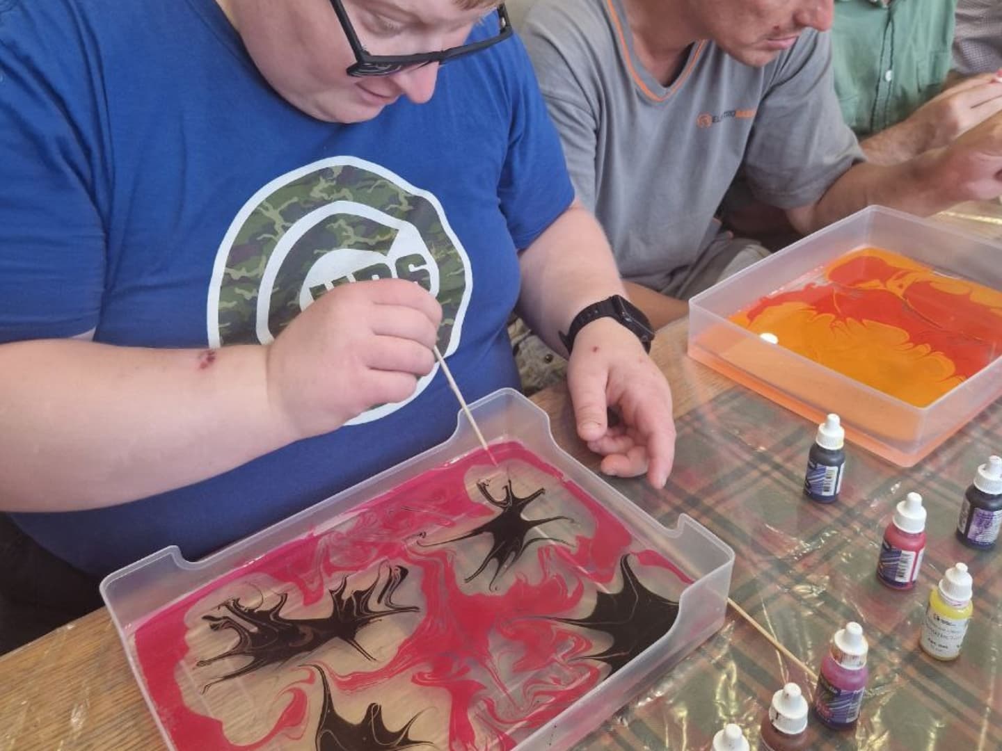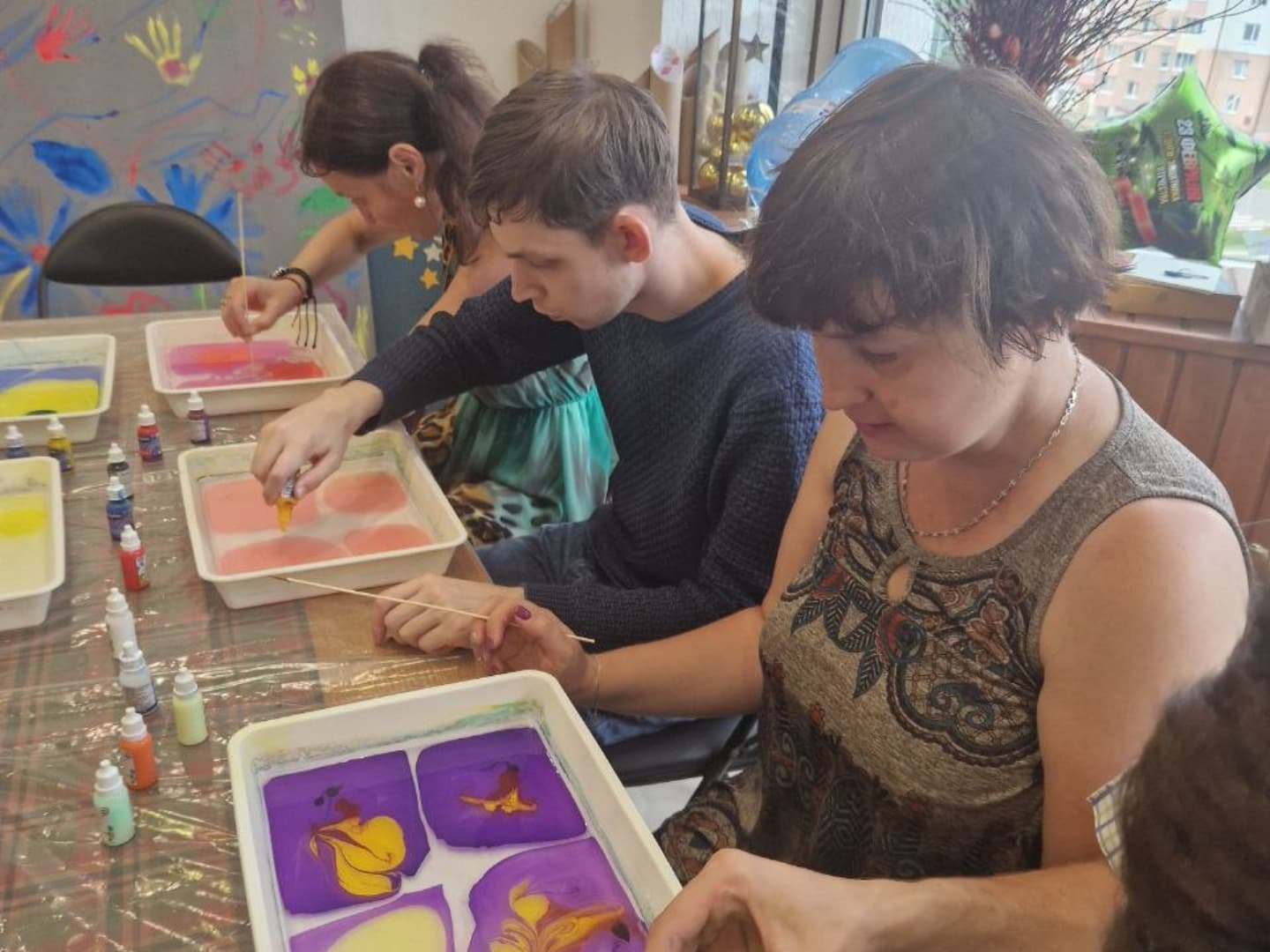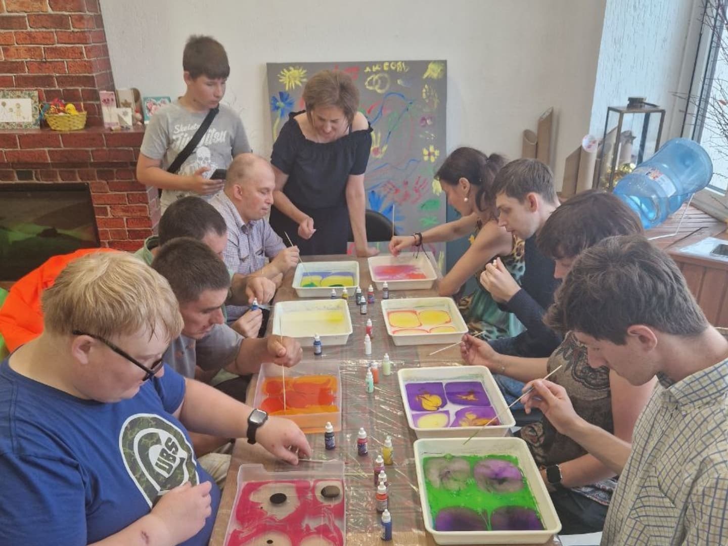 06.08.2025В любительском объединении визуального искусства «Моё солнце» для людей с особенностями развития и ограниченными возможностями проходит ряд тематических творческих мастер-классов. С особым интересом участники посещают занятия по рисованию красками на воде в стиле «эбру».