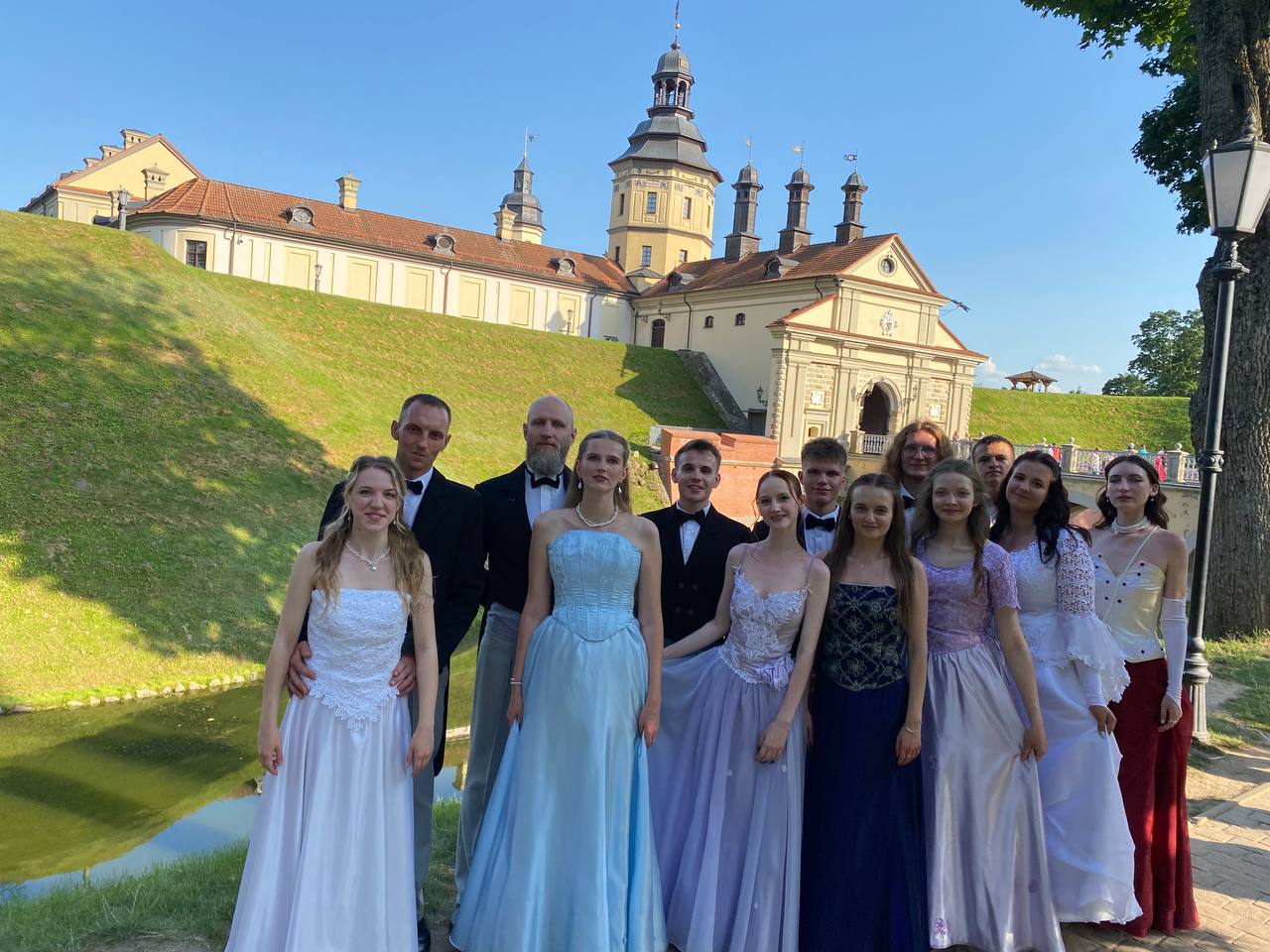 В путешествие в прошлое отправились участники ансамбля народного танца «Раздоліца» нашего учреждения. И удивляли изящной хореографией прямо на «Балу у Радзивиллов» во дворе Несвижского замка. На одно из ключевых мероприятий фестиваля они поехали в составе группы Молодечненского, Вилейского, Воложинского и Мядельского районов. На открытии – танцевали торжественный «Полонез», на закрытии – старинный «Контрданс». Также «Раздоліца» порадовала величественной «Сарабандой».