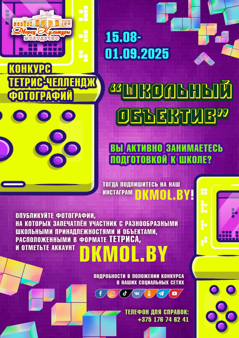 15.08.2025Тетрис-челлендж фотографий «Школьный объектив» инициировал отдел по работе с детьми и молодёжью Дворца культуры г. Молодечно.