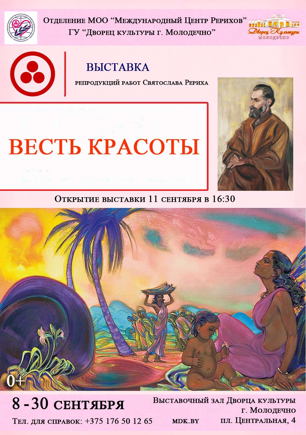 25.08.2025Во Дворце культуры г. Молодечно с 8 по 30 сентября пройдёт выставка «Весть Красоты». Будут представлены репродукции картин Святослава Рериха, выдающегося художника, учёного и общественного деятеля XX века.