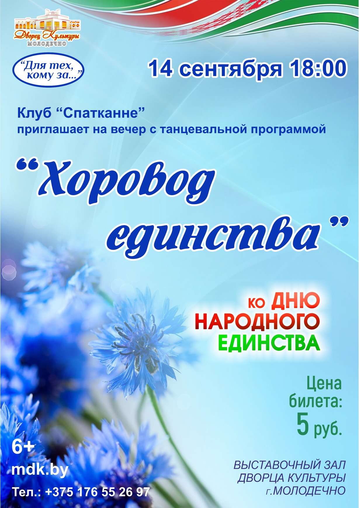 09.09.2025Клуб знакомств «Спатканне» Дворца культуры г. Молодечно приглашает 14 сентября на вечер отдыха «Хоровод единства».