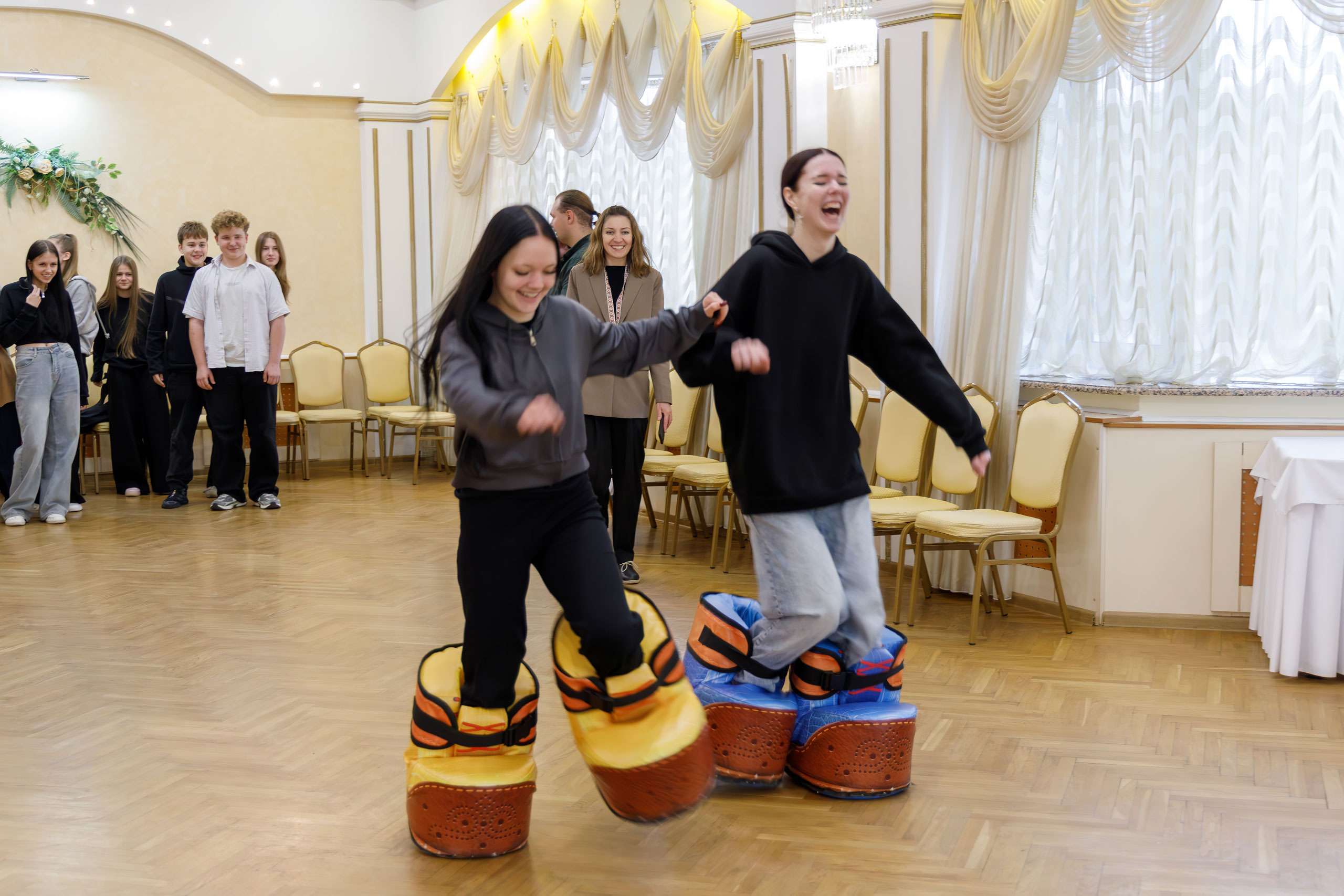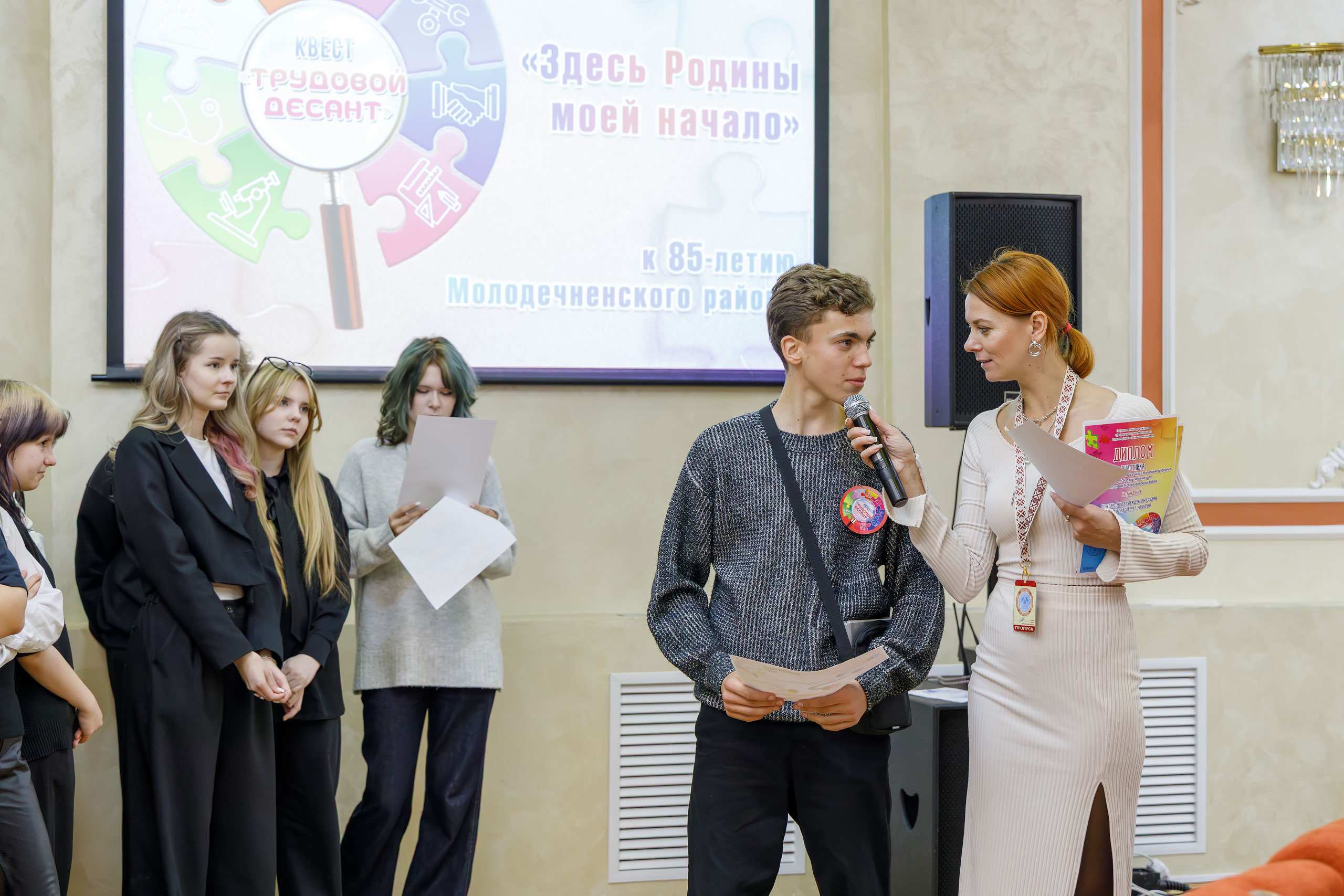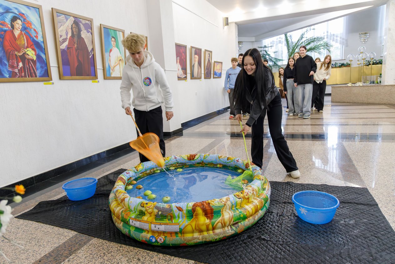 В рамках форума прошёл занимательный квест «Трудовой десант». Во Дворце культуры были созданы тематические локации. Юноши и девушки с неподдельным интересом путешествовали по ним, выполняя занятные задания. К примеру, складывали из большущих кубиков дома и замки, преодолевали дистанцию в громадных башмаках, ловили сачком яблоки из надувного бассейна, наполненного водой, отгадывали зашифрованные песни и даже доили корову (точнее таковой макет с соответствующими функциями).