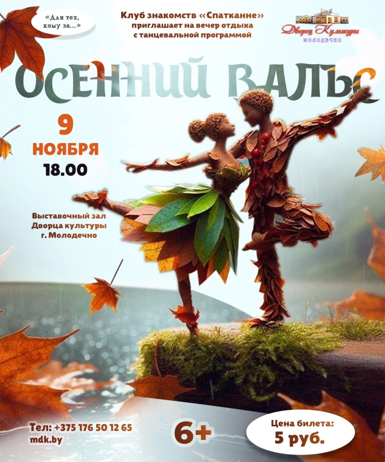 03.11.2025Дворец культуры г. Молодечно приглашает 9 ноября на вечер отдыха «Для тех, кому за…» с танцевальной программой «Осенний вальс».