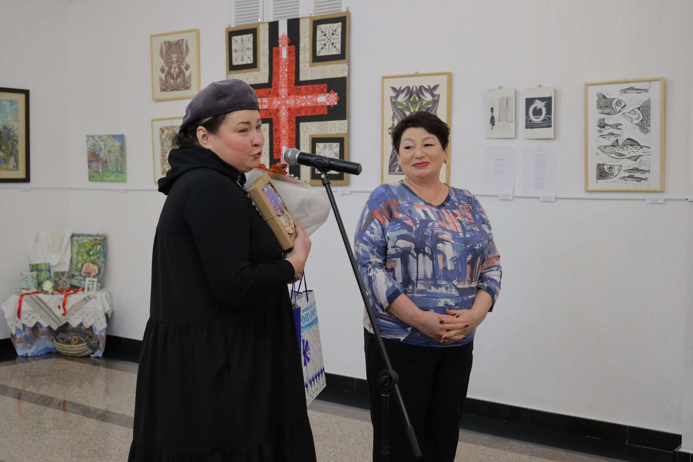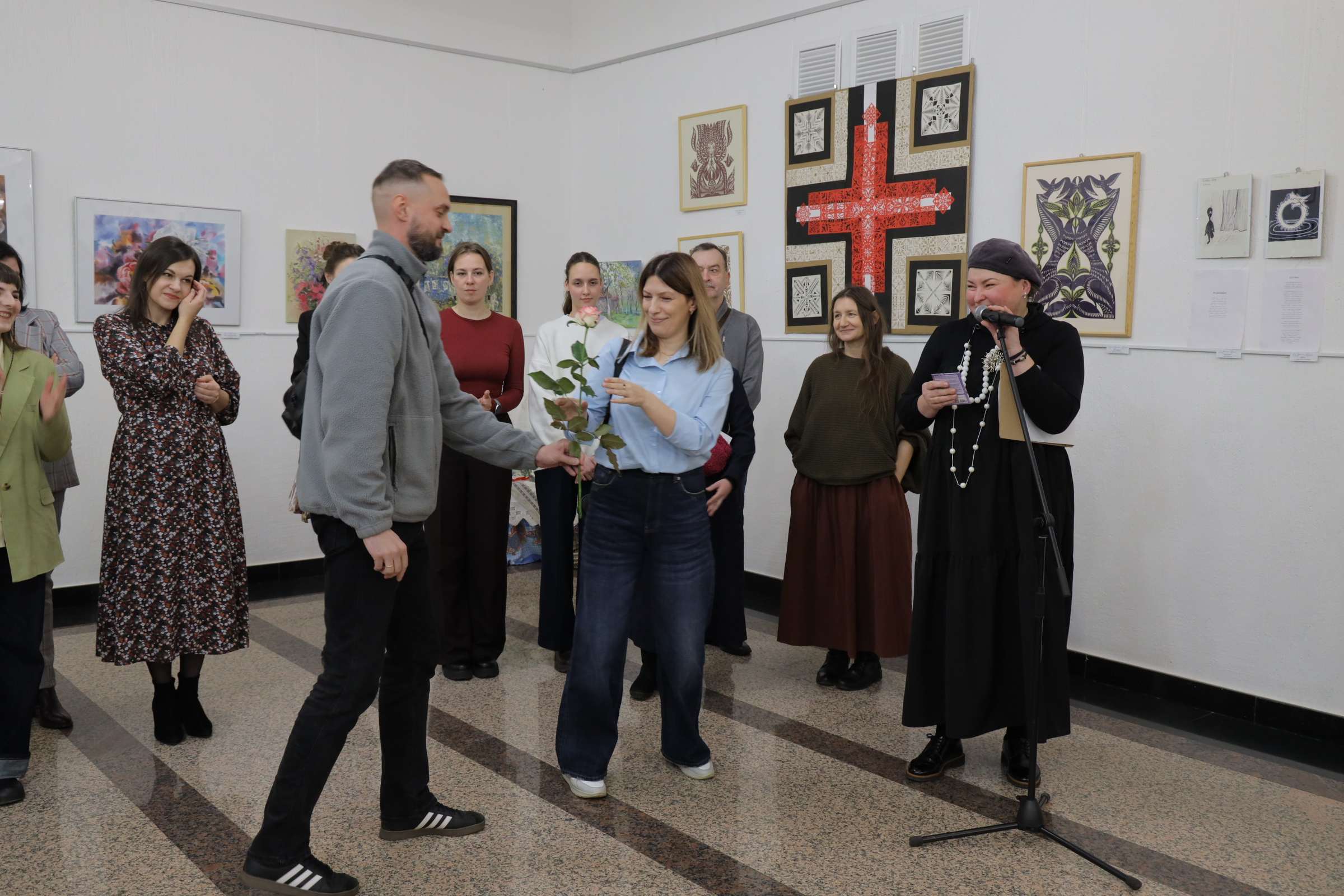 В числе тех, кто обратились с приветствием, – главный специалист отдела культуры Молодечненского районного исполнительного комитета Оксана Курчина и заместитель директора Дворца культуры Маргарита Шитыко. Особые слова благодарности за вклад в развитие художественного движения и поддержку талантов были адресованы руководителю народной студии изобразительного и декоративно-прикладного искусства Елене Кучко.