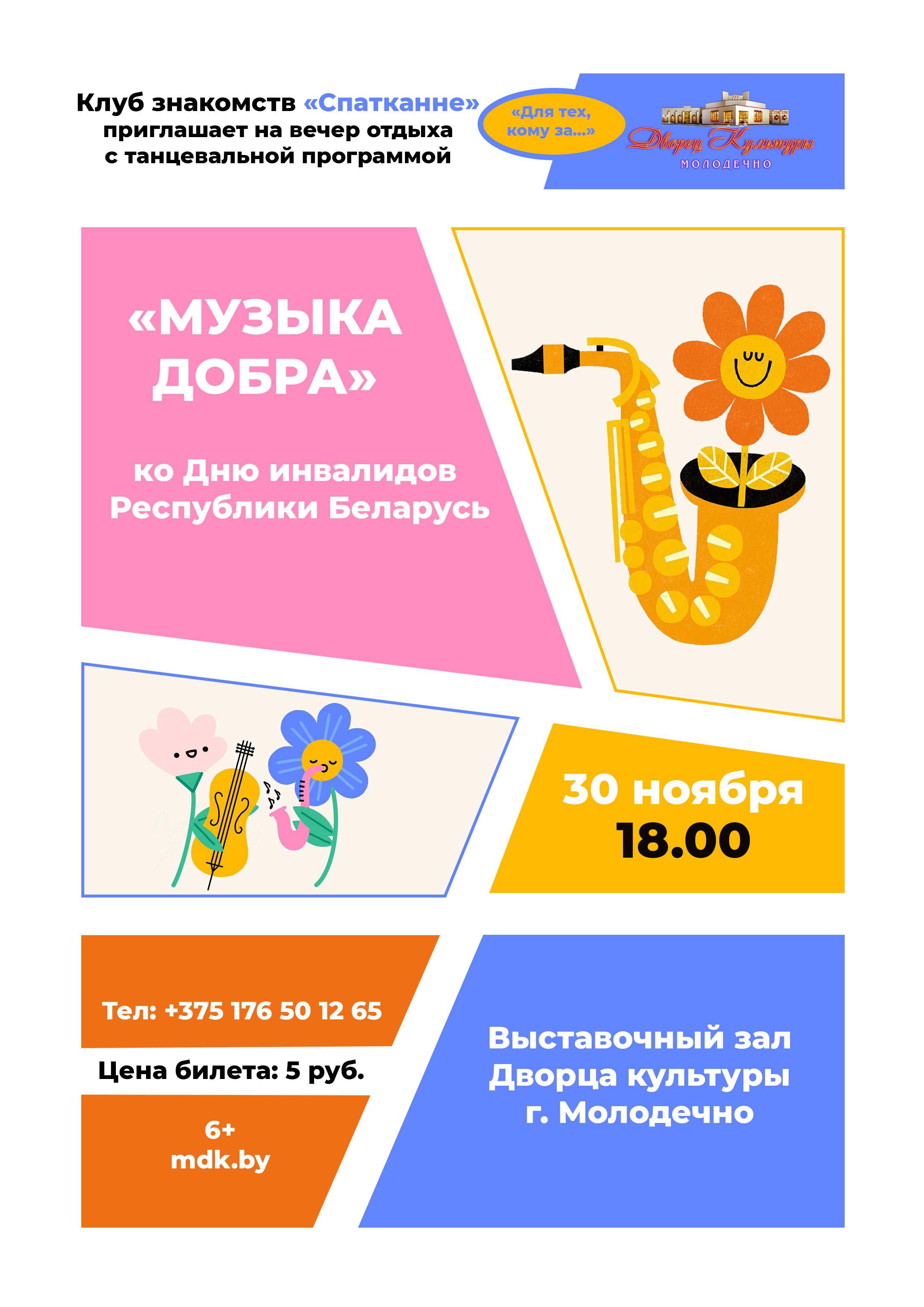 24.11.2025Клуб знакомств «Спатканне» Дворца культуры г. Молодечно приглашает 30 ноября на вечер отдыха с танцевальной программой «Музыка добра».