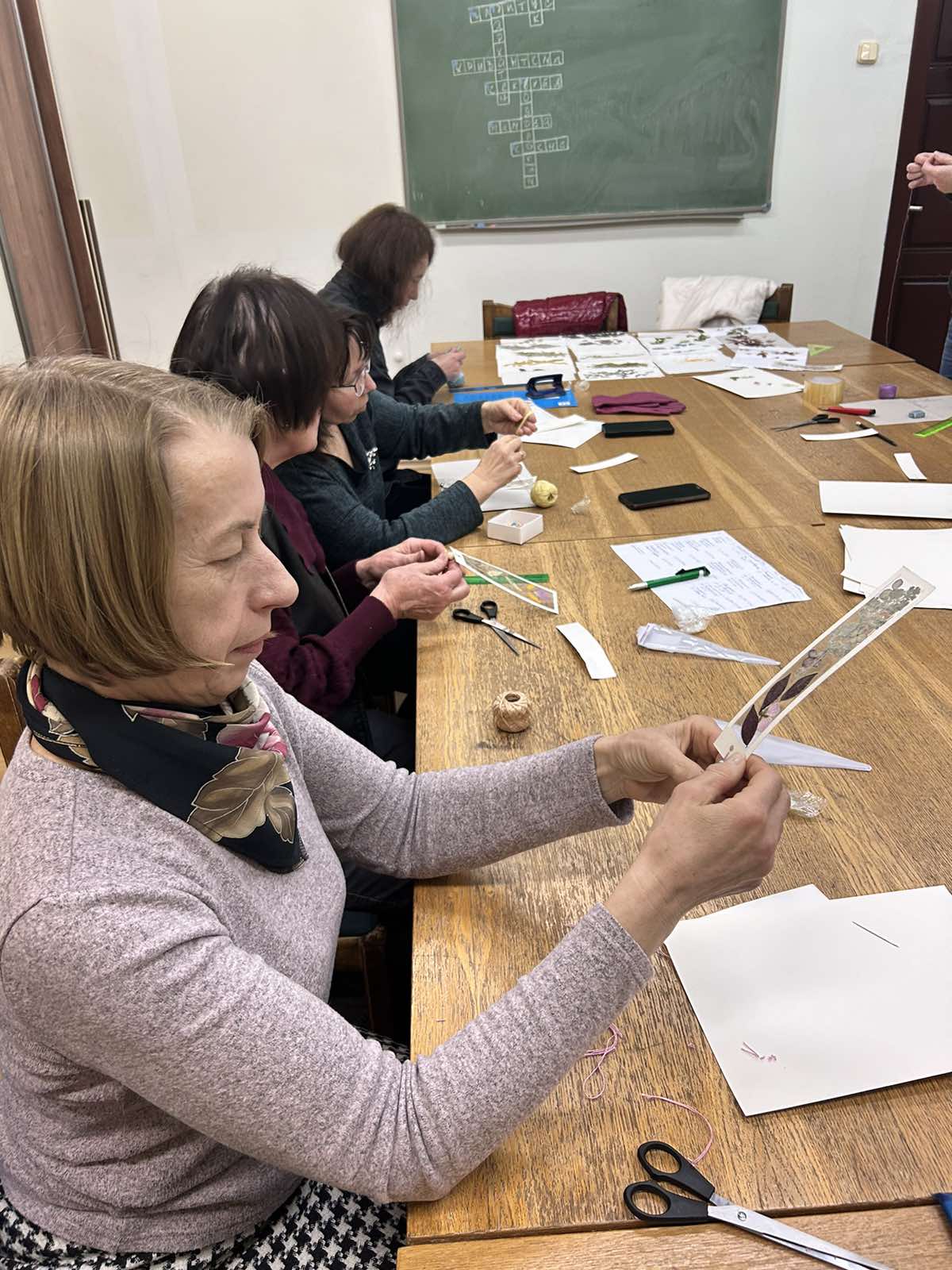 Участники клуба используют, прежде всего, природный материал. Уже состоялось первое занятие со взрослыми, на котором они изготавливали закладки для книг.