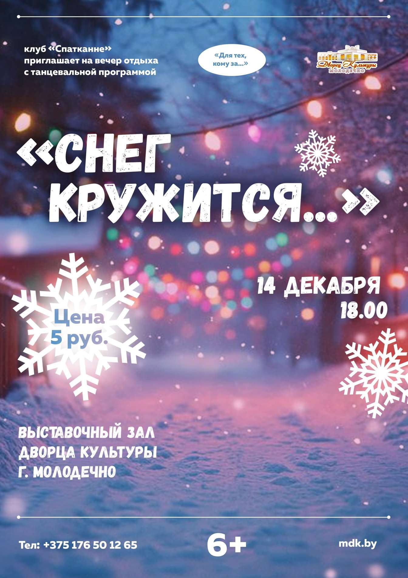 09.12.2025Клуб «Спатканне» Дворца культуры г. Молодечно приглашает 14 декабря на вечер отдыха с танцевальной программой «Снег кружится...»!