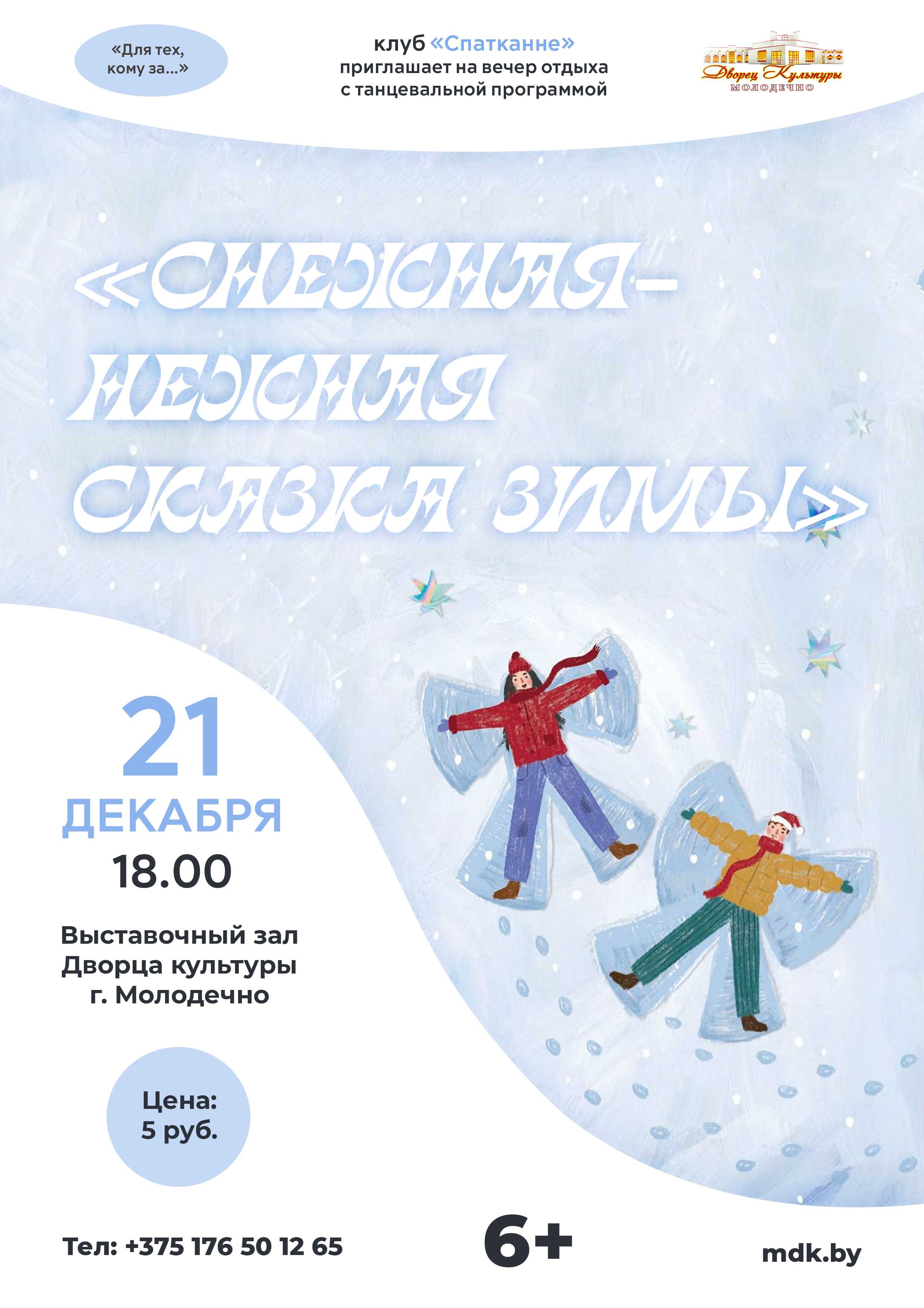 16.12.2025Клуб «Спатканне» Дворца культуры г. Молодечно приглашает 21 декабря на вечер отдыха с танцевальной программой «Снежная-нежная сказка зимы».