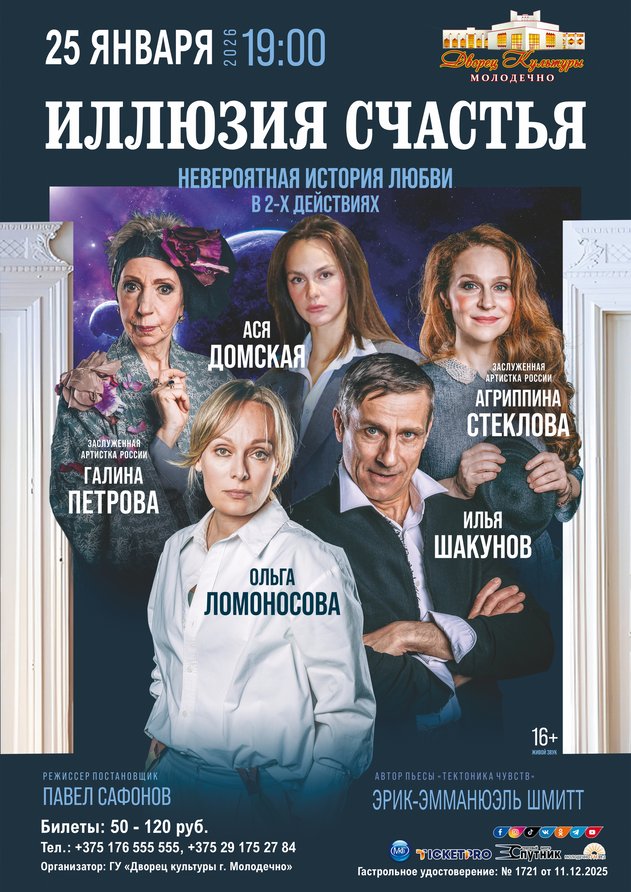 16.12.2025Дворец культуры г. Молодечно приглашает 25 января 2026 года на спектакль «Иллюзия счастья»