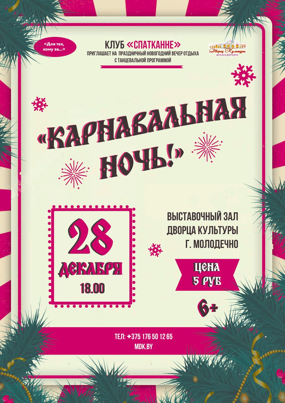 23.12.2025Клуб «Спатканне» Дворца культуры г. Молодечно приглашает 28 декабря на вечер отдыха с танцевальной программой «Карнавальная ночь».