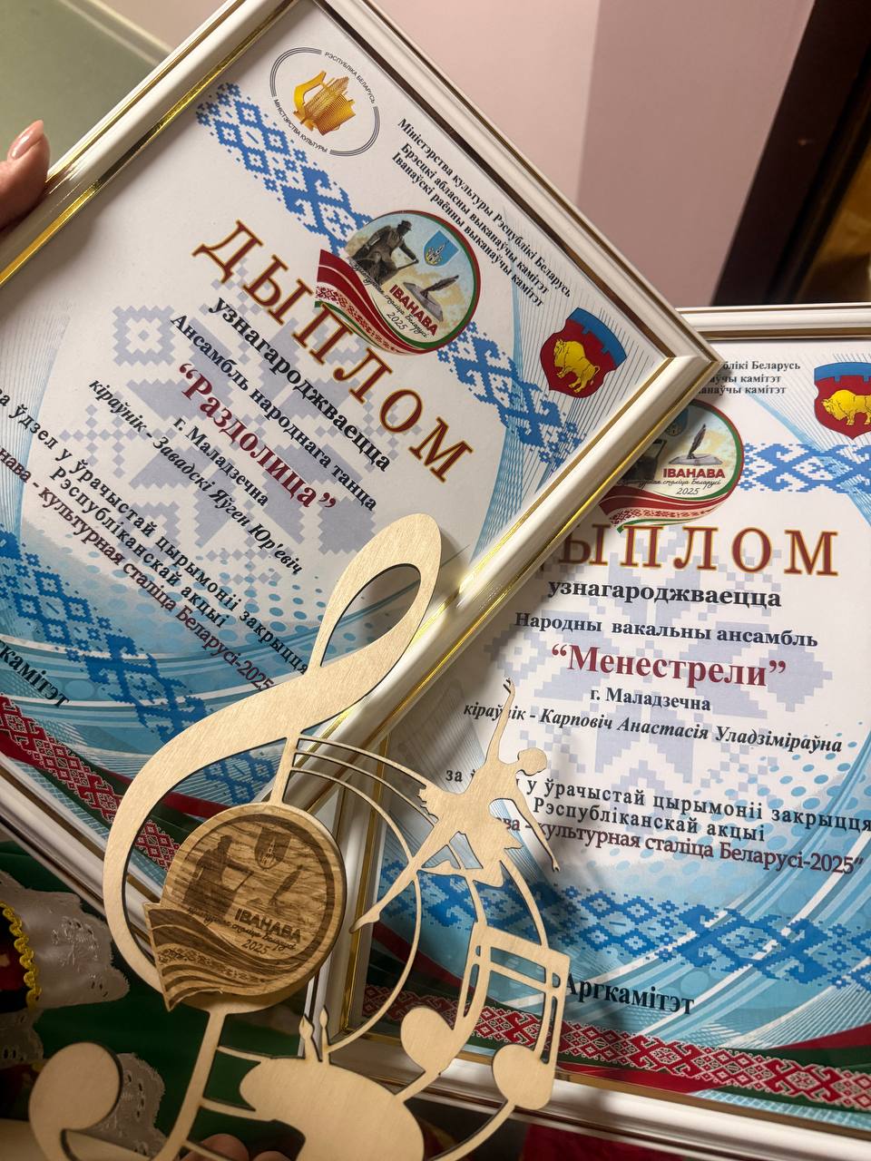 В первый месяц зимы коллектив вместе с ансамблем народного танца «Раздолица» получил приглашение принять участие в церемонии закрытия республиканской акции «Иваново – культурная столица Беларуси – 2025», которая прошла 12 декабря на Брестчине. Гала-концерт стал финальной точкой годичного цикла мероприятий.