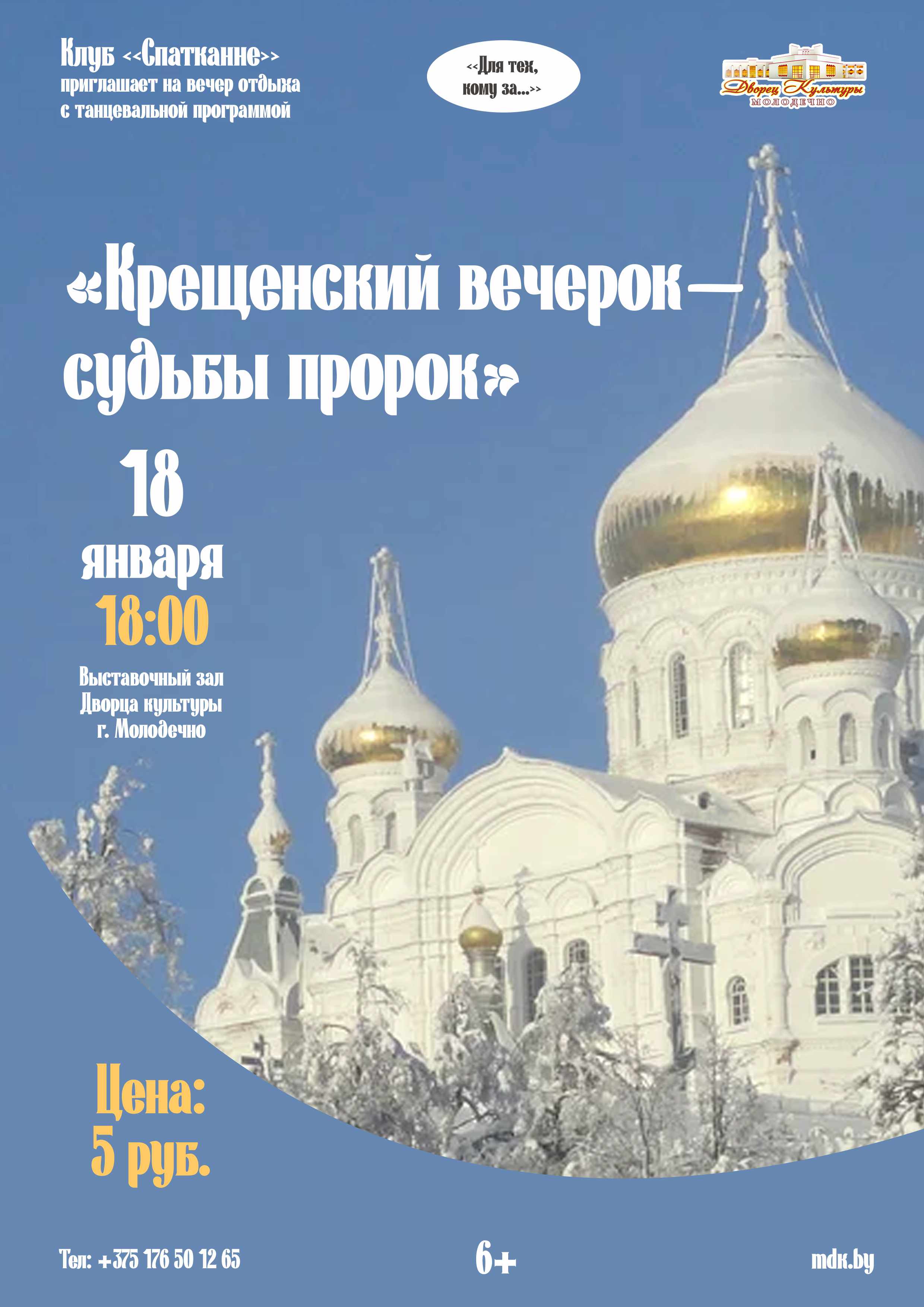 14.01.2026Клуб «Спатканне» Дворца культуры г. Молодечно приглашает 18 января на вечер отдыха с танцевальной программой «Крещенский вечерок – судьбы пророк».