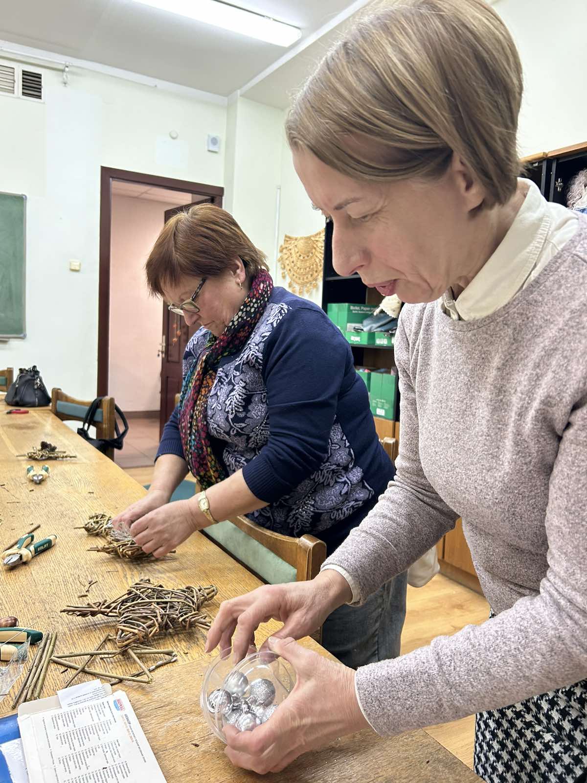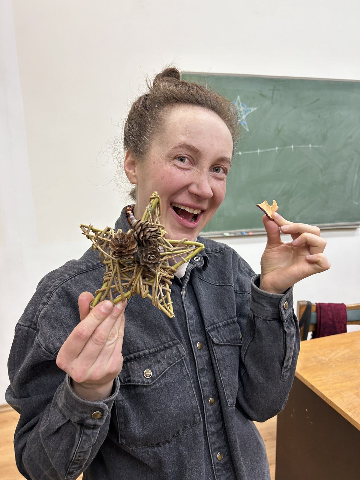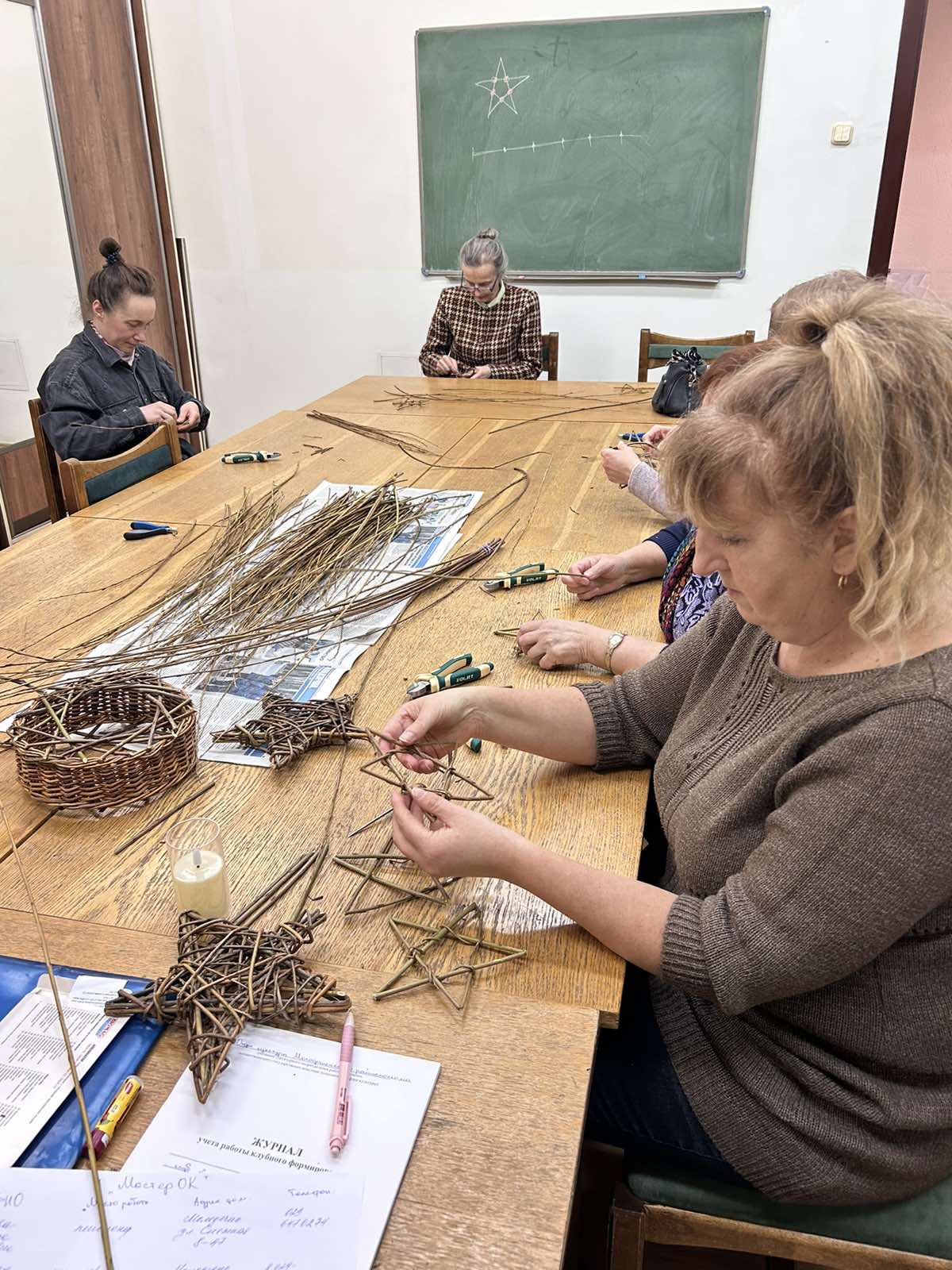 На практической части – осваивали приёмы плетения, учились формировать каркас звезды и наполнять его узорами из лозы. Постепенно из-под умелых рук рождались оригинальные изделия. Участники мастер-класса унесли с собой не только рождественские звезды, но и новые знания, навыки и, конечно же, вдохновение для дальнейшего творчества.