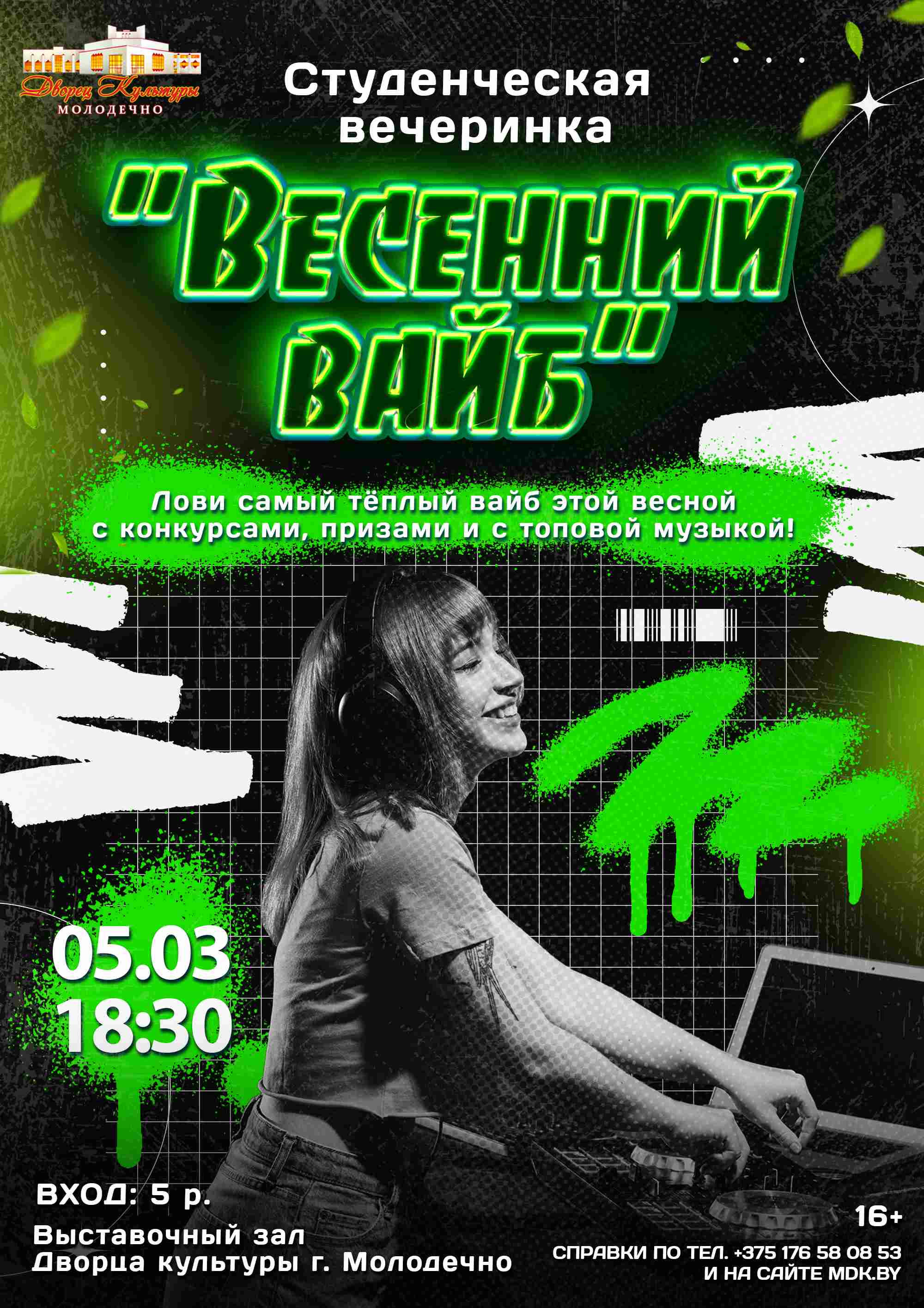 03.03.2026Во Дворце культуры г. Молодечно 5 марта состоится студенческая вечеринка «Весенний вайб».