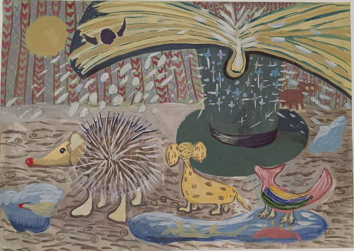 На выставке во Дворце культуры представлены работы, наполненные прежде всего фантазией художников. Они постарались передать дух приключений муми-троллей и их уникальный взгляд на мир.
